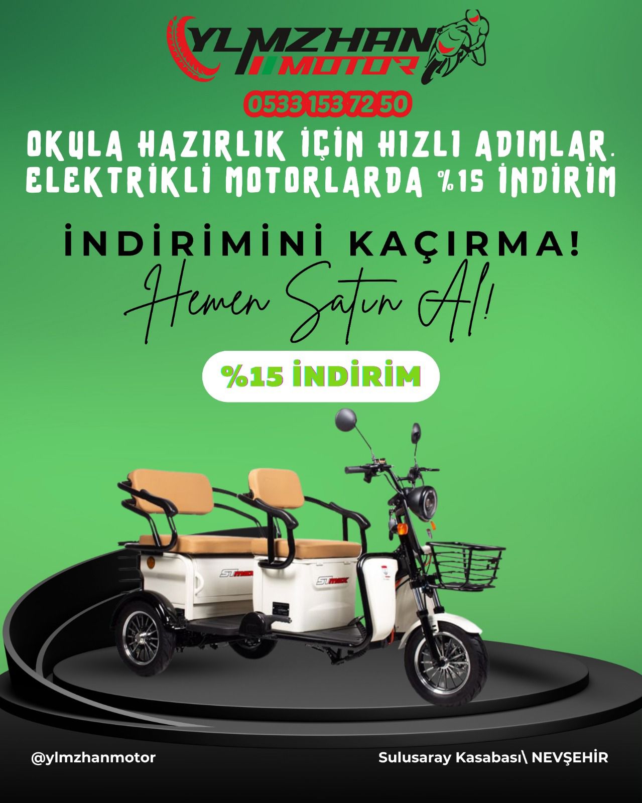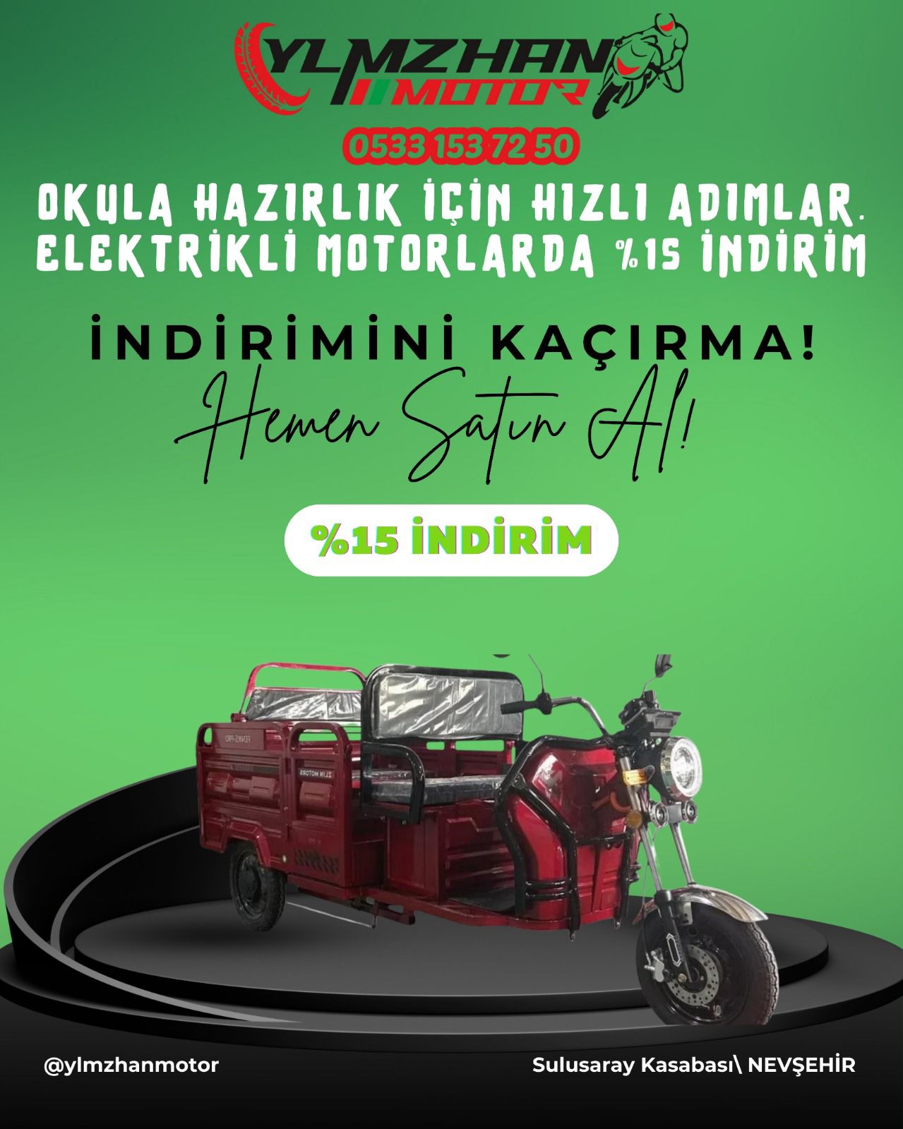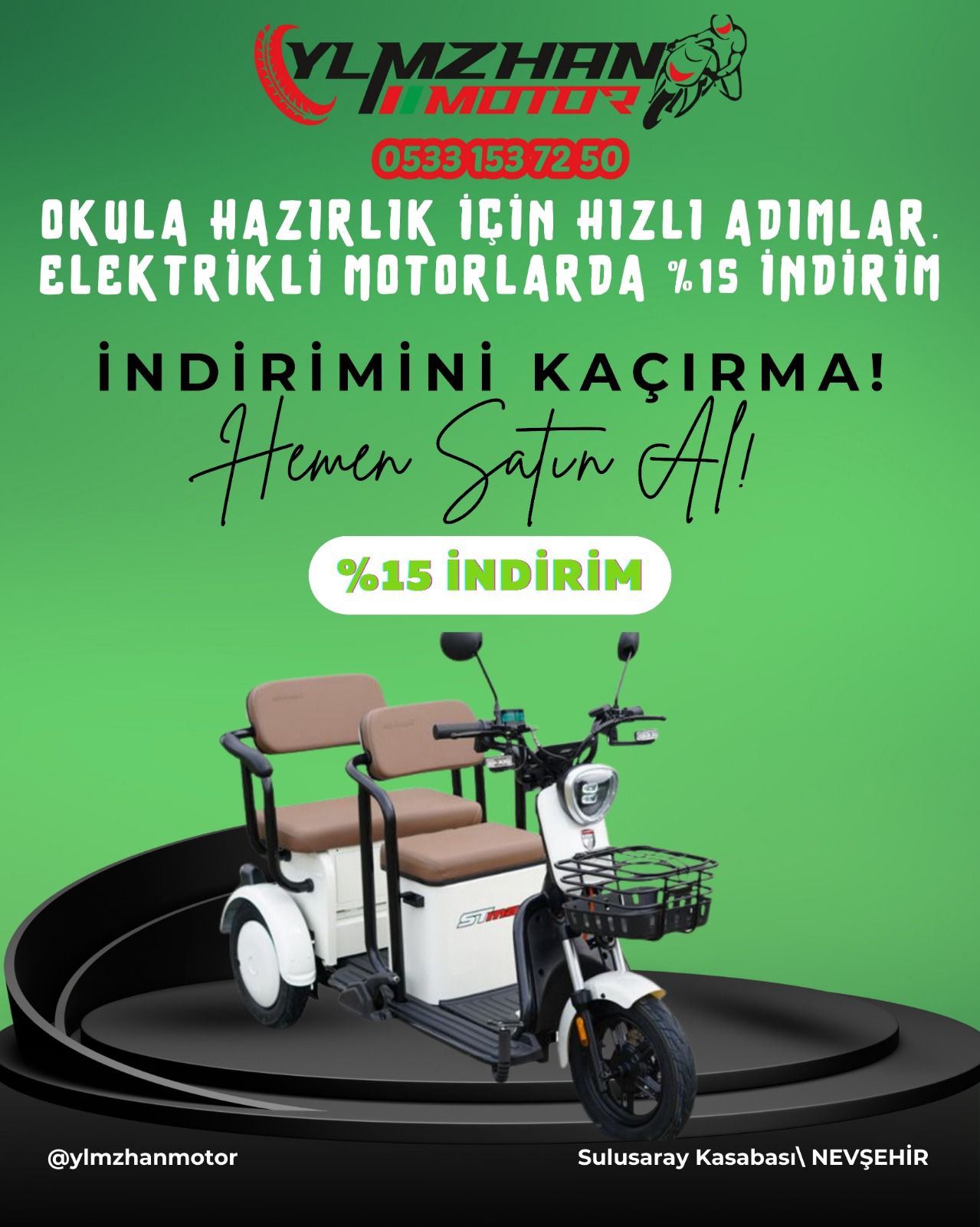 Nevşehir’de motosiklet tutkunlarını sevindirecek büyük bir kampanya başladı. Yılmazhan Motor (YLMZHAN MOTOR), sonbahar sezonuna özel olarak elektrikli motorlarda %15’e varan indirim fırsatı sunuyor.