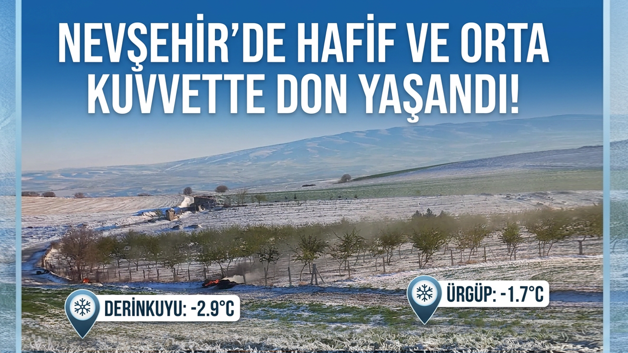 Nevşehir, 20-21 Nisan tarihlerinde zirai faaliyetler açısından son dönemin en kritik gecelerinden birini yaşadı. Meteoroloji 7. Bölge Müdürlüğü tarafından yapılan uyarıların ardından hava sıcaklıkları il genelinde sıfırın altına düşerken, birçok noktada don olayı gözlendi.