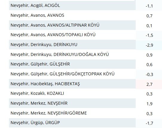- Gülşehir/Gökçetoprak Köyü: -0,3°C