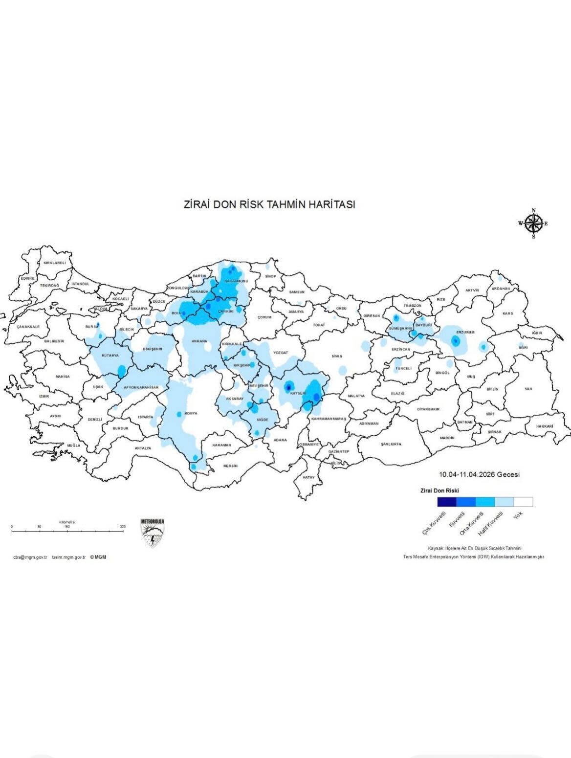 Meteoroloji Genel Müdürlüğü Analiz ve Tahmin Merkezi’nden yapılan değerlendirmelere göre, Nevşehir ve ilçelerinde hafif ile yer yer orta şiddette zirai don riski bulunuyor. Özellikle İç Anadolu’nun kuzeyi ve Nevşehir’in bazı ilçelerinde, Salıyı Çarşambaya bağlayan geceden itibaren sıcaklıkların düşmesi ve don tehlikesi bekleniyor.