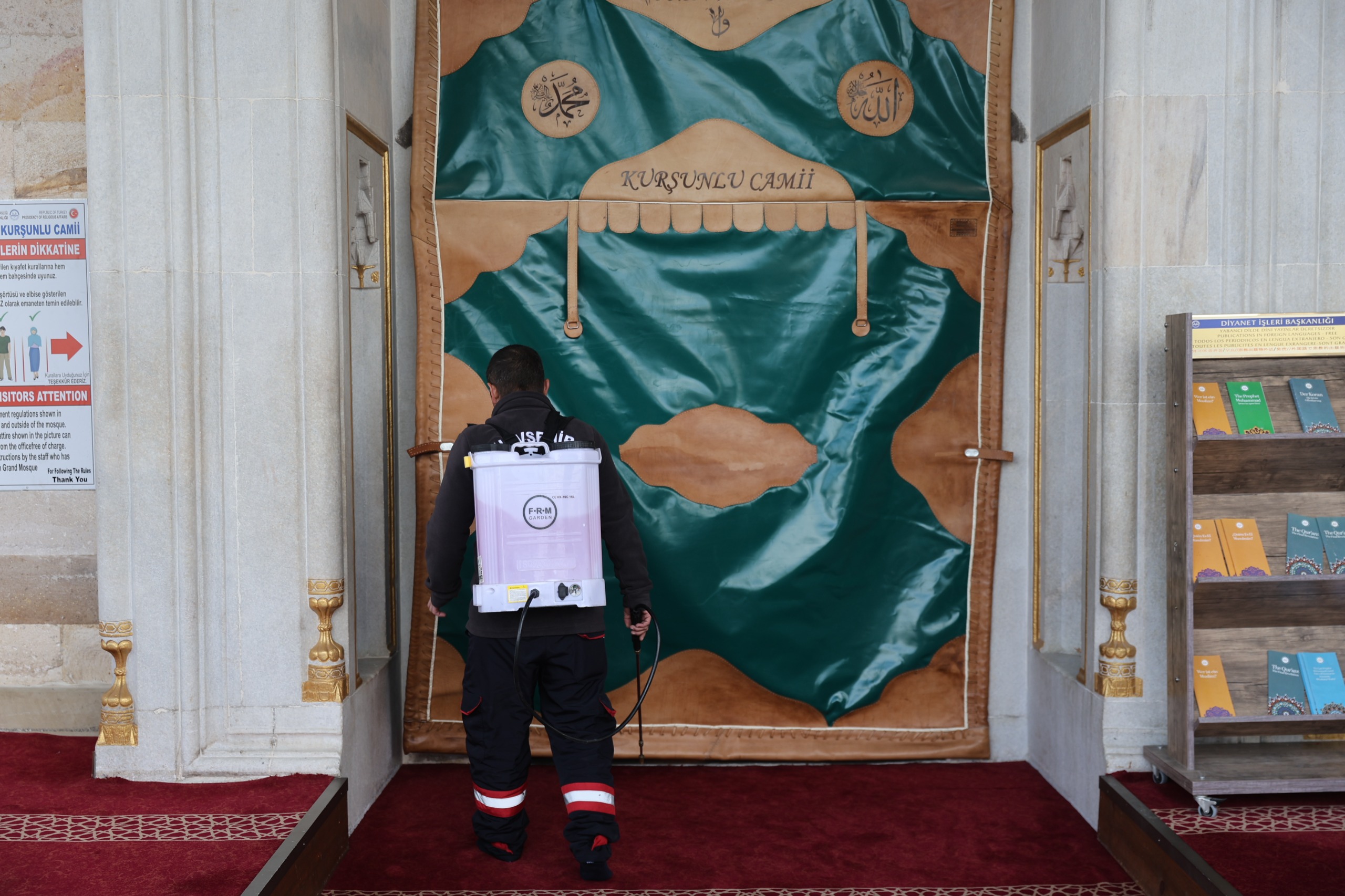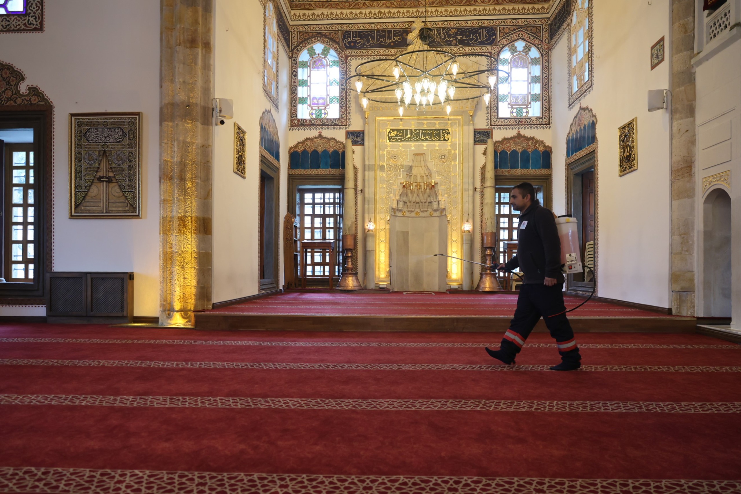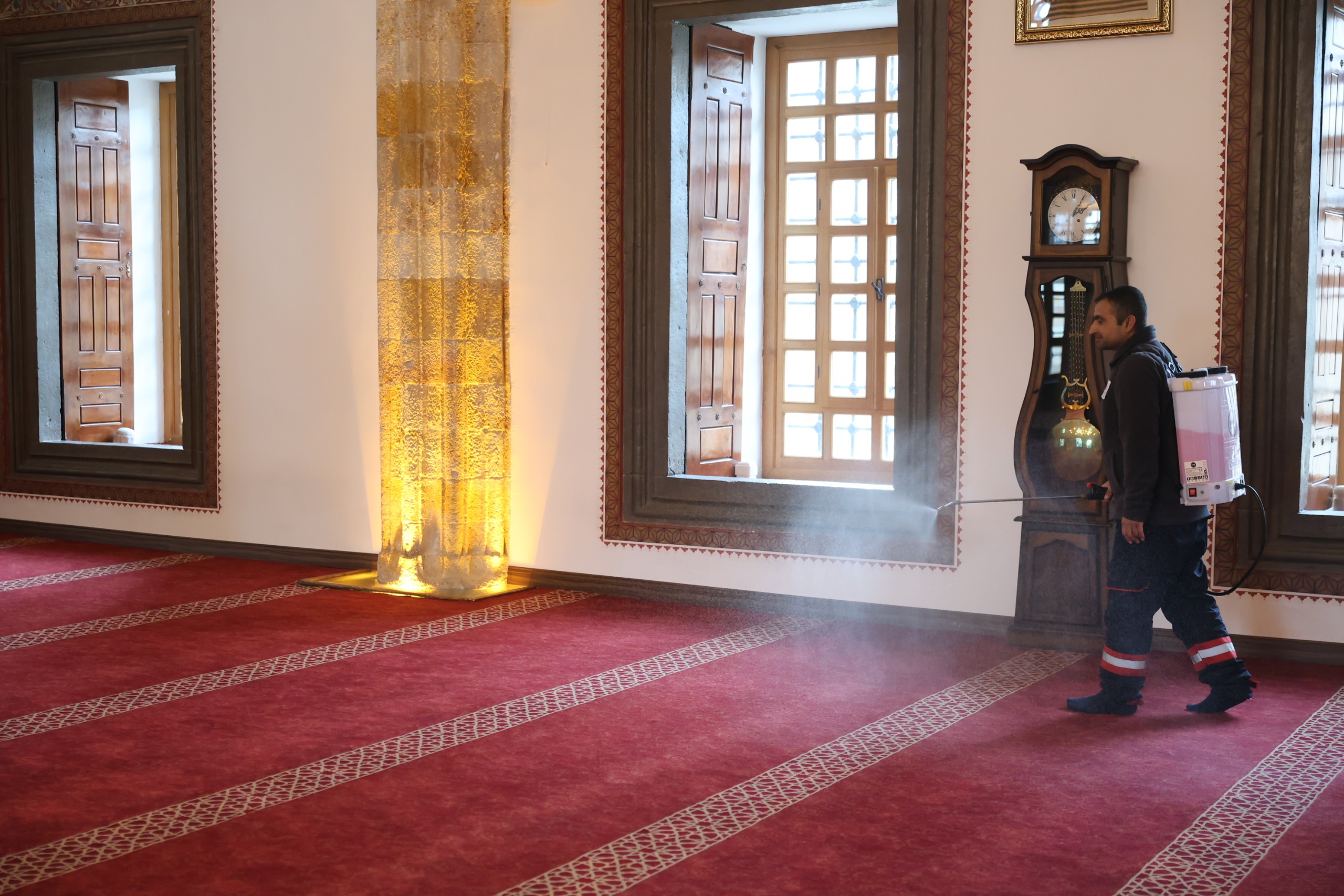 Ramazan ayı dolayısıyla Nevşehir'deki cami ve mescitlere Nevşehir Belediyesi Temizlik İşleri Müdürlüğü ekipleri tarafından Gül suyu ile sıkıldı.
