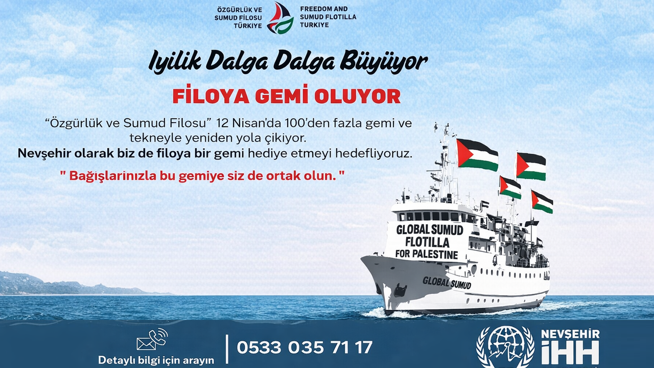 “Rotamız Gazze, Yükümüz İyilik” sloganıyla yürütülen çalışma çerçevesinde, 12 Nisan’da 100’den fazla gemi ve teknenin yola çıkması planlanıyor. Nevşehirli hayırseverlerin katkılarıyla hazırlanan yardım gemisinin de bu kapsamda Gazze’ye ulaşması hedefleniyor.