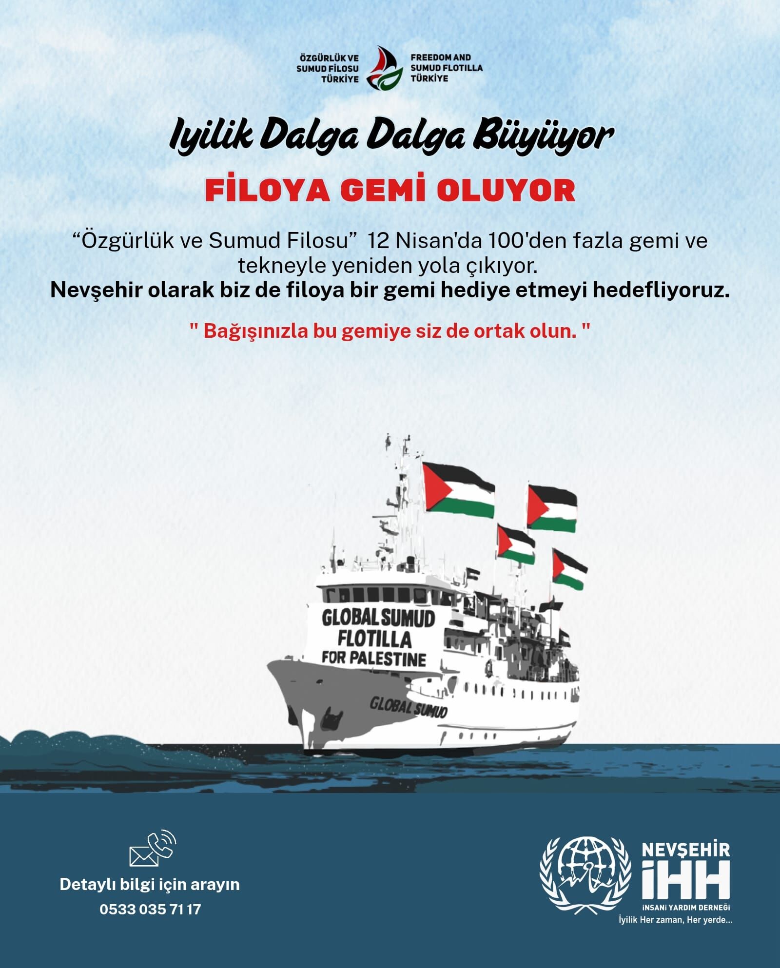 Yardım gemisine destek olmak ve detaylı bilgi almak isteyenler, 0533 035 71 17 numaralı telefondan İHH yetkililerine ulaşabilecek.