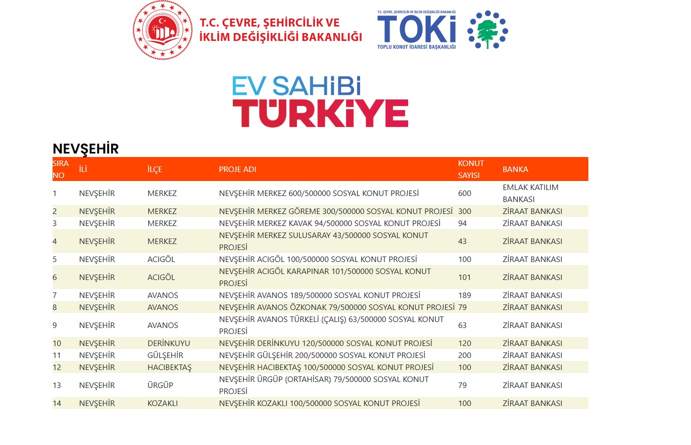 “Hayırlı olsun Nevşehir! Cumhurbaşkanımız Sayın Recep Tayyip Erdoğan’ın liderliğinde başlatılan ‘Ev Sahibi Türkiye’ projesi kapsamında, ilimiz genelinde 2.168 yeni sosyal konut inşa ediliyor. Bu proje, sadece konut değil; Nevşehir’in geleceğine atılmış kalıcı bir imza olacak. Bu büyük yatırım için Cumhurbaşkanımız Sayın Recep Tayyip Erdoğan’a ve Çevre, Şehircilik ve İklim Değişikliği Bakanımız Sayın Murat Kurum’a şükranlarımızı sunuyoruz.”