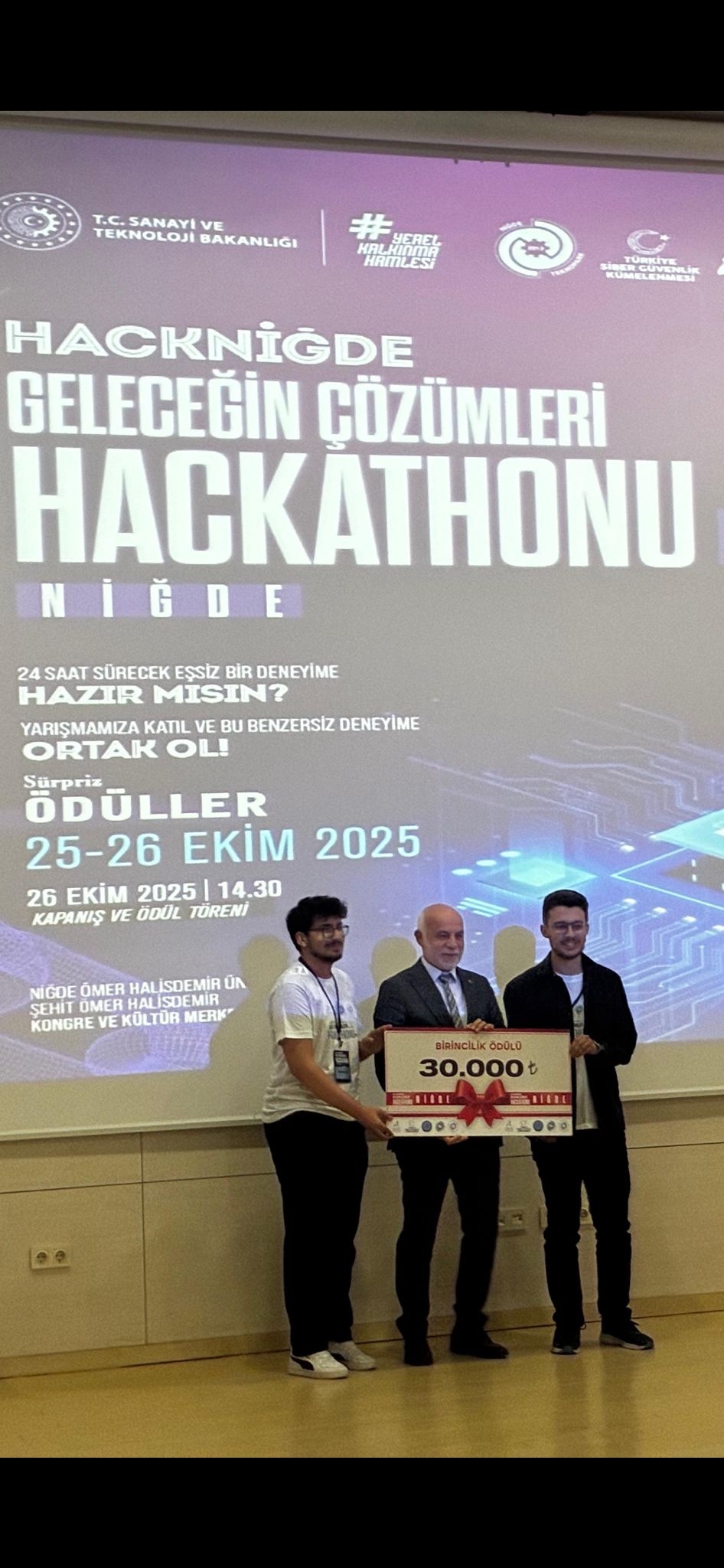 Nevşehir Hacı Bektaş Veli Üniversitesi (NEVÜ) Mühendislik ve Mimarlık Fakültesi Bilgisayar Mühendisliği bölümü Teknofest Kulübü yönetimi 3. sınıf öğrencileri Kemal Hakkı Avsever ve Furkan Durmaz başkanlığında kurulan NevCode takımı, Niğde’deki yazılım yarışması HackNiğde’de birinci oldu.