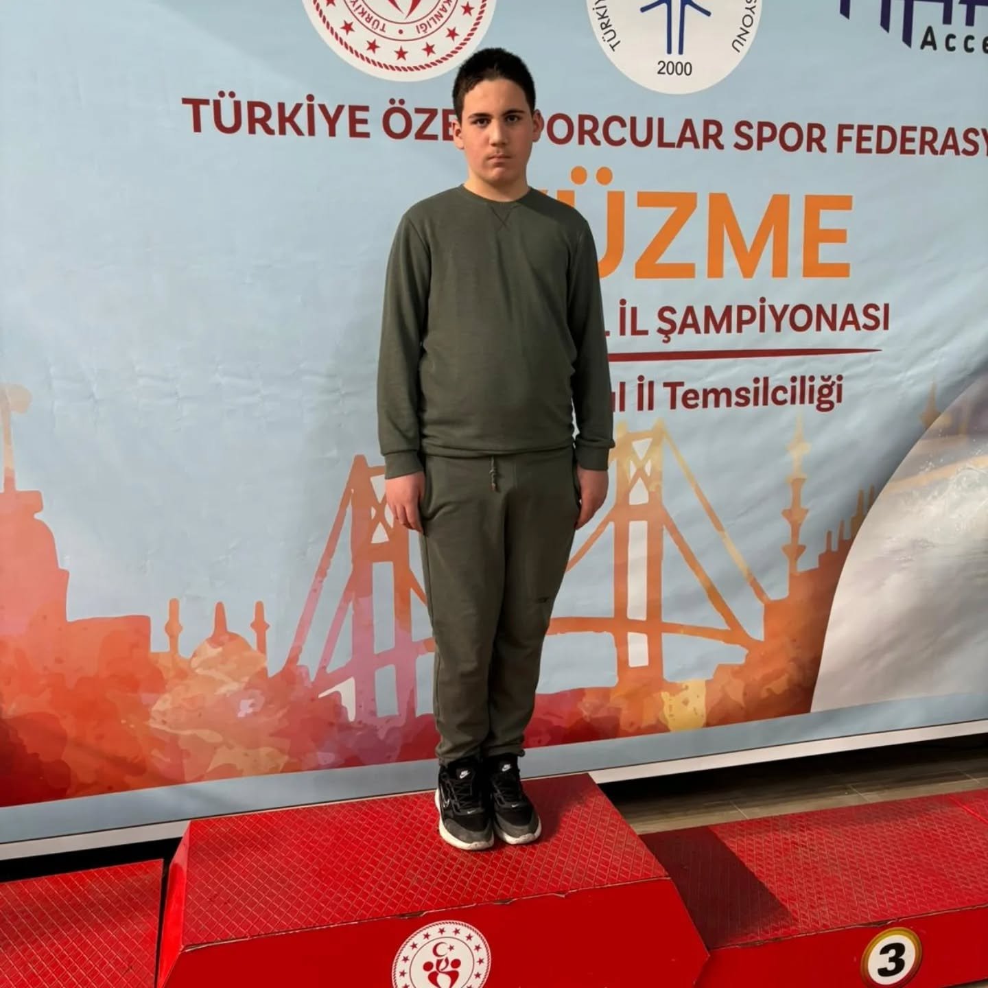 Nevşehir’in Acıgöl ilçesi Topaç köyü eşrafından, İstanbul Silivri’de ikamet eden Ali Toprakkaya’nın oğlu 14 yaşındaki özel öğrenci Yunus Toprakkaya, Türkiye Özel Sporcular Spor Federasyonu tarafından düzenlenen yüzme il şampiyonasında büyük bir başarıya imza attı.