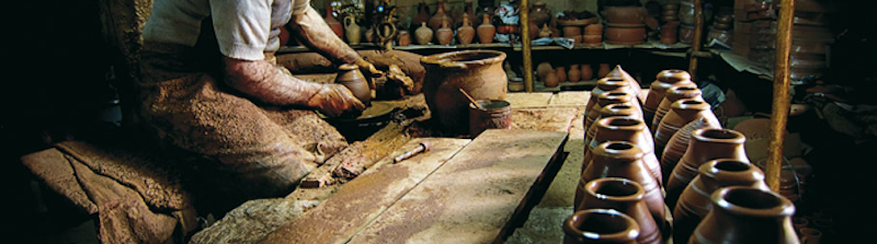 Topraktan, kilden yapılmış çanak, çömlek, testi, sürahi, bardak, kase, küp ve saksı gibi eşyalar satan esnafa çömlekçi denirdi.