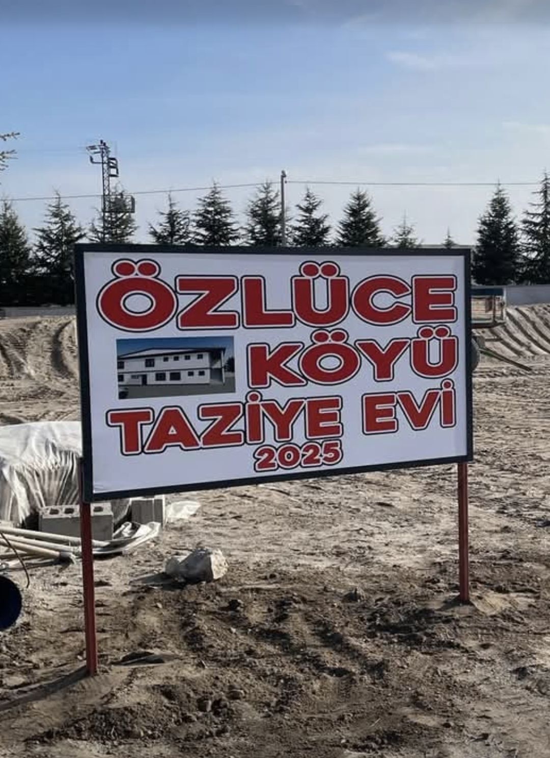 Özlüce Köyü’nde yapımı devam eden taziye evi, tamamlandığında köy sakinlerinin taziye ve sosyal ihtiyaçlarını karşılayacak modern bir alan olacak. Projenin hayata geçmesiyle birlikte köyde dayanışma ruhunun ve hayırseverlik kültürünün de pekişmesi hedefleniyor.