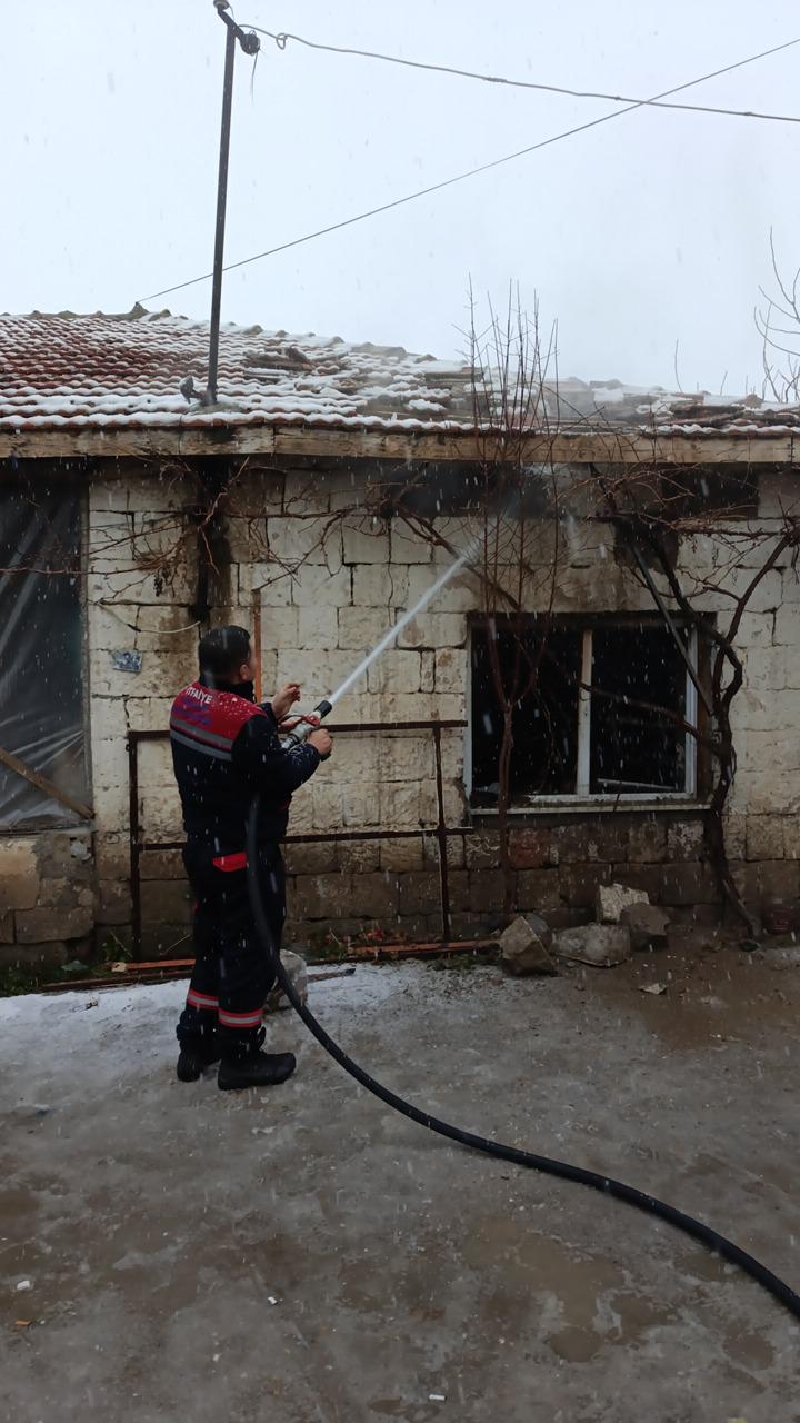 Nevşehir’in Avanos ilçesine bağlı Türkeli beldesi Çalış Aşağı Mahalle’de, Hanifi ve Şahin Cömert’e ait tek katlı evde henüz belirlenemeyen bir nedenle yangın çıktı.