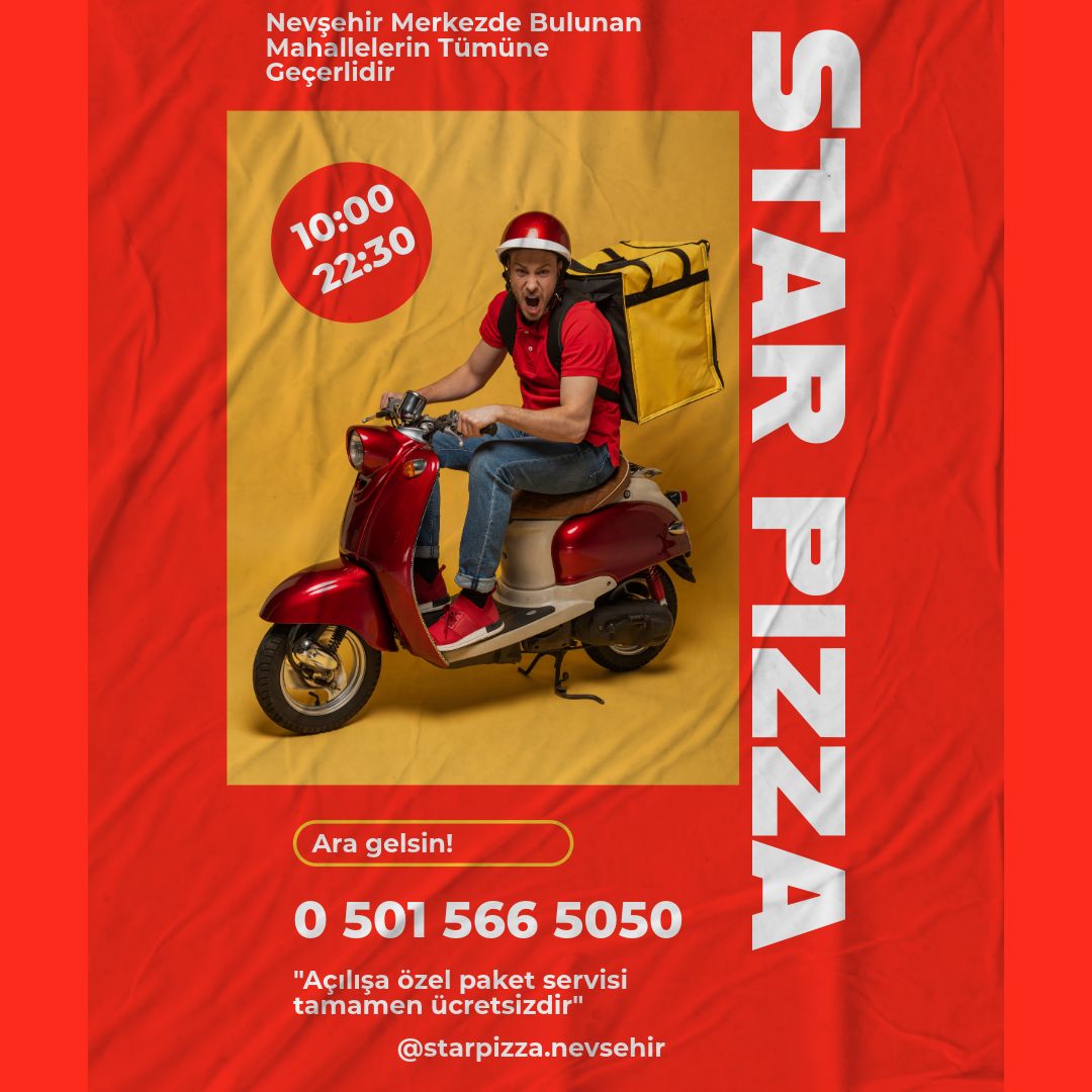 Nevşehirli pizza severler artık yepyeni bir lezzet durağına kavuştu! Şehrin kalbinde açılan Star Pizza, her gün taze yoğrulan, hafif ve yağsız hamuru ile fark yaratıyor. En kaliteli malzemelerle hazırlanan pizzalar, lezzeti ve tazeliğiyle ilk lokmada kendini hissettiriyor.