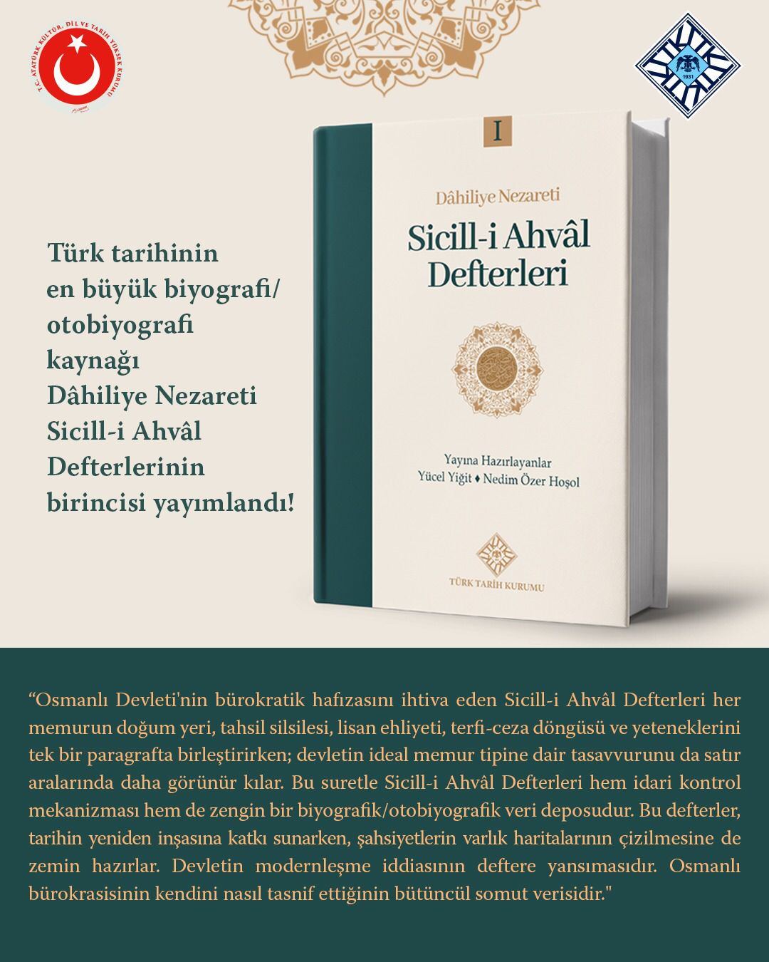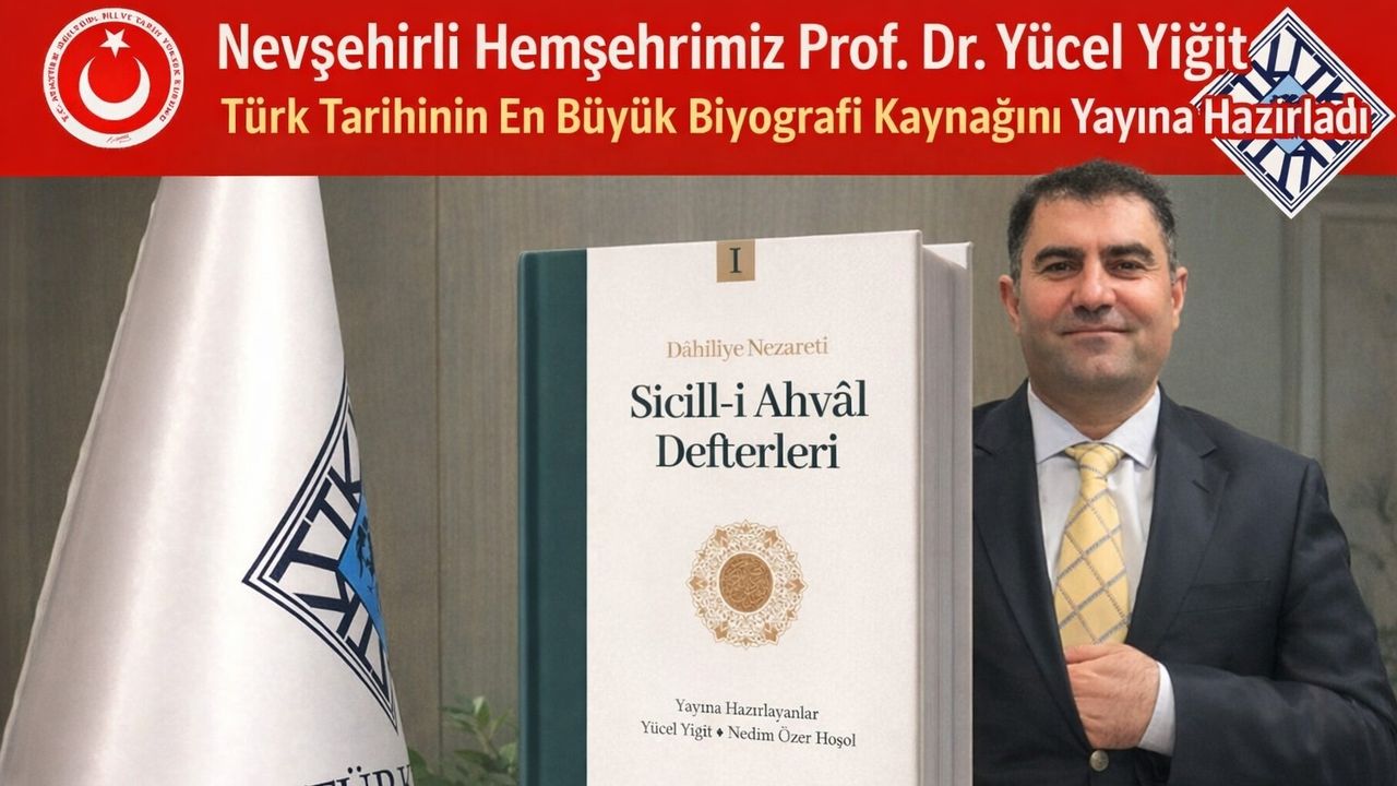 Nevşehirli değerli hemşehrimiz Prof. Dr. Yücel Yiğit, Türk tarihinin en kapsamlı biyografi ve otobiyografi kaynağı olan Dâhiliye Nezâreti Sicill-i Ahvâl Defterleri’nin birincisini yayına hazırladı. Türk Tarih Kurumu yayınları arasında yer alan bu çalışma, Osmanlı bürokrasisinin modernleşme süreçlerini ve memur profilini gün yüzüne çıkaran eşsiz bir arşiv niteliği taşıyor.