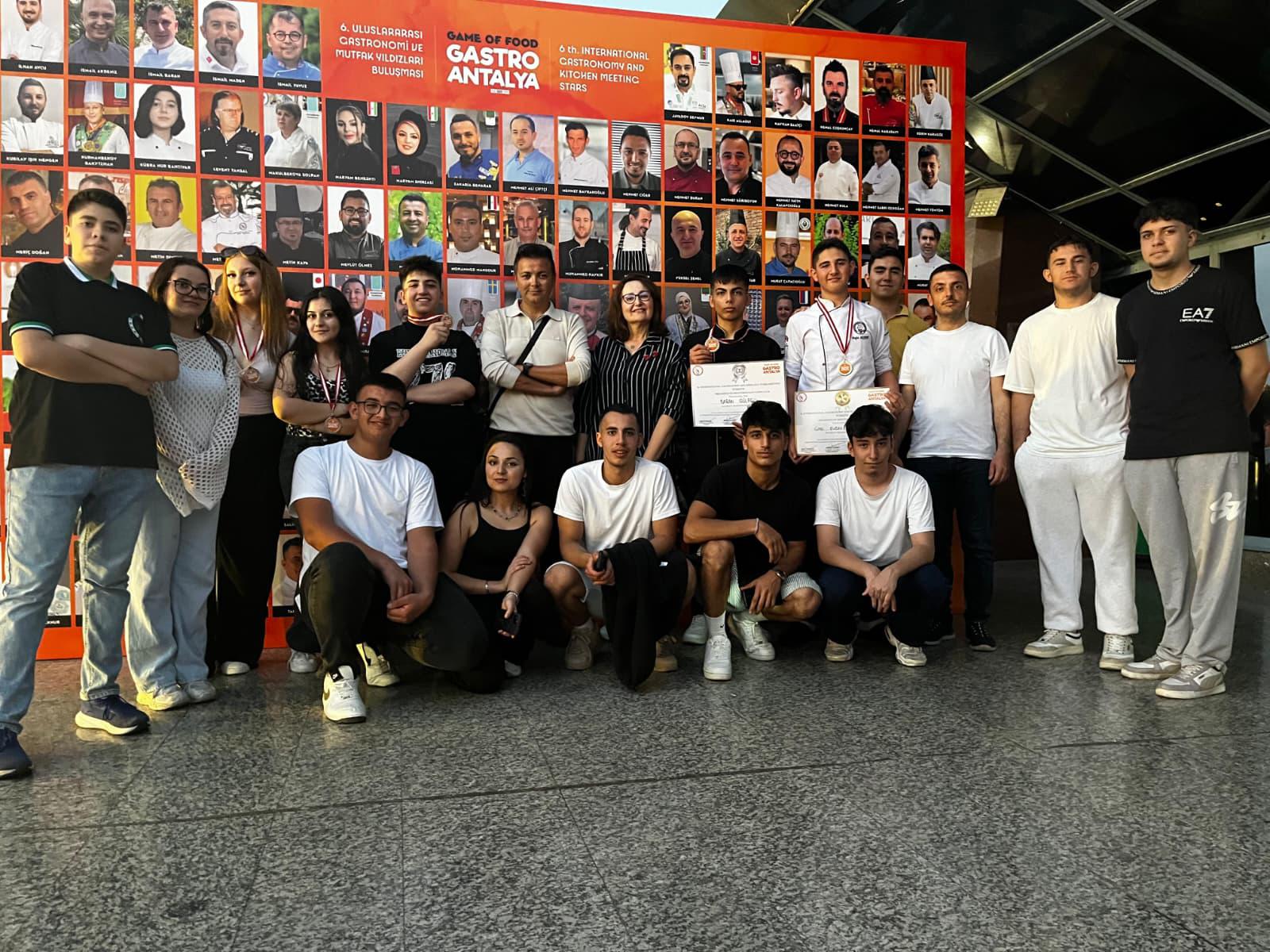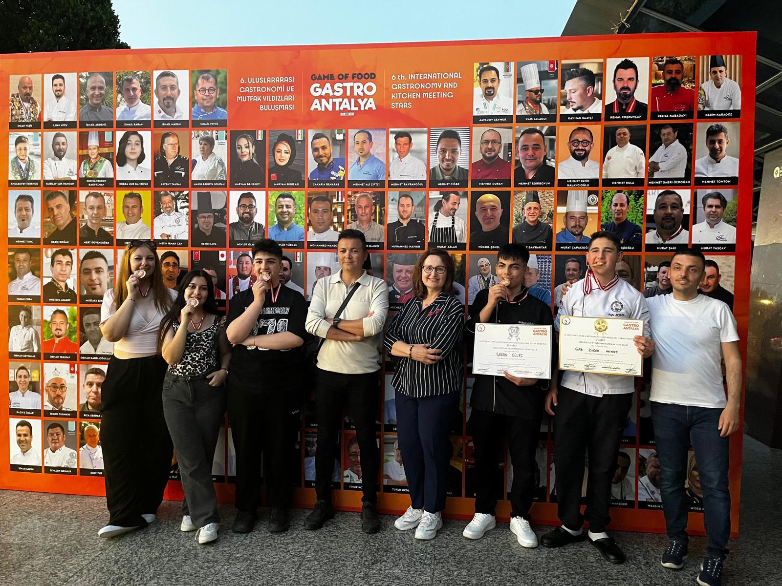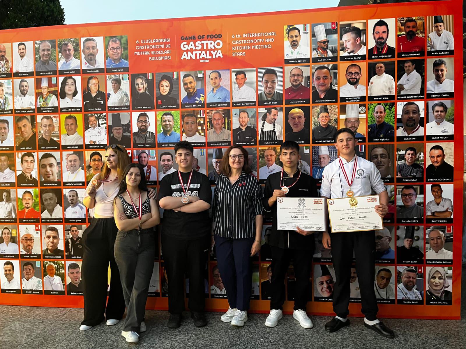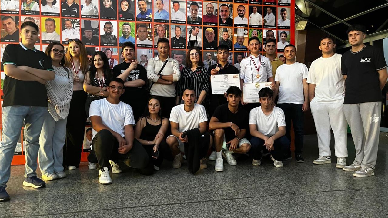 Yiyecek İçecek Hizmetleri Alanı öğretmenleri Özkan Mutlu ve Nurten Boz eşliğinde yarışmaya katılan genç şefler, hem bireysel hem takım kategorilerinde derece elde ederek büyük gurur yaşattılar.