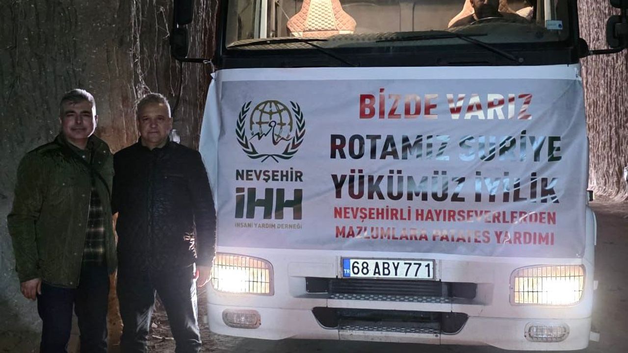 Nevşehir’den, Suriye’de savaşın ardından hayata tutunmaya çalışan ihtiyaç sahiplerine yönelik insani yardım eli uzatıldı. İHH Nevşehir İnsani Yardım Derneği koordinasyonunda hazırlanan 2 tır dolusu patates, dualar eşliğinde uğurlandı.