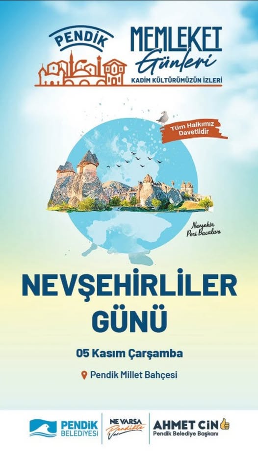 Pendik’te yaşayan Nevşehirli vatandaşlar için özel bir buluşma günü hazırlanıyor. Pendik Belediyesi’nin katkılarıyla gerçekleştirilecek Hemşeri Günleri Etkinliği, birlik, beraberlik ve memleket özlemini paylaşmak isteyen Nevşehirli hemşerileri bir araya getirecek.