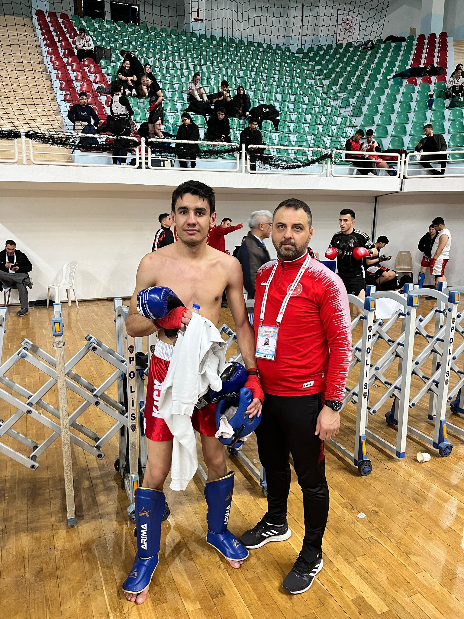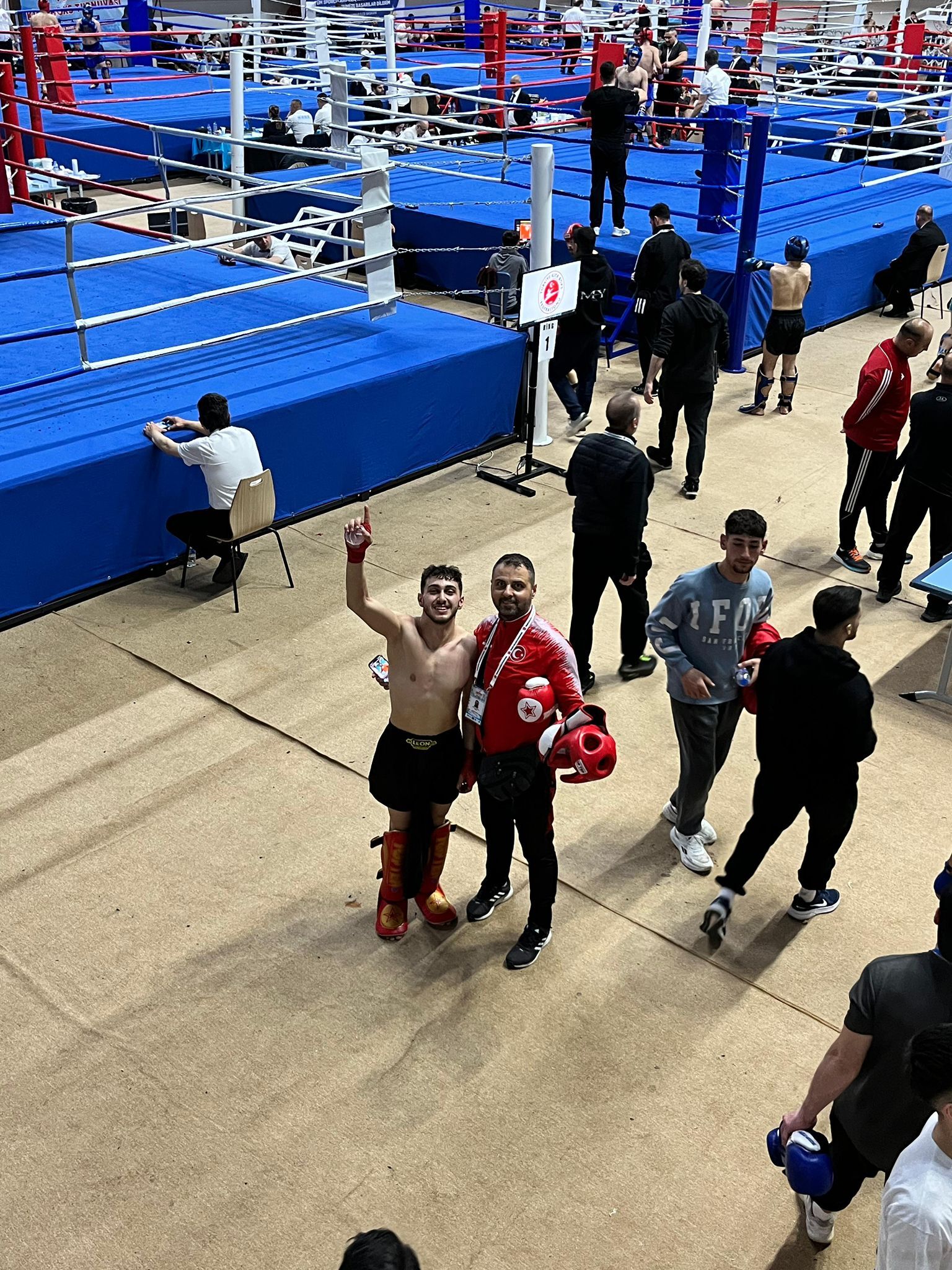 Nevşehir Kickboks İl Temsilcisi ve antrenörü Mustafa Çetinkaya ile Kickboks antrenörü Yunus Emre Çetinkaya, sporcuları yoğun bir şekilde maçlarda destekleyerek başarı için mücadele etti.