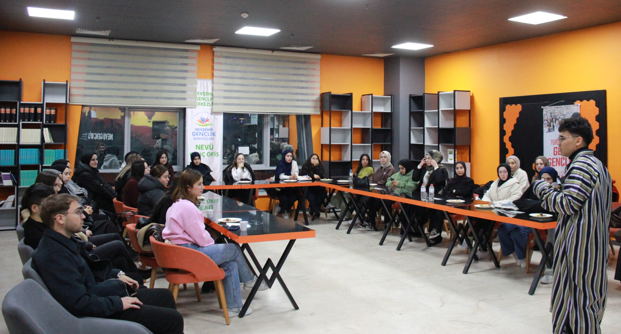Nevşehir Hacı Bektaş Veli Üniversitesi (NEVÜ) Avrasya Türk Öğrenci Kulübü ile NEVÜ Kızılay Kulübü iş birliğinde Genç Ofis’te düzenlenen “Bir Yudum Kültür” etkinliği, öğrencilerin yoğun katılımıyla gerçekleştirildi.