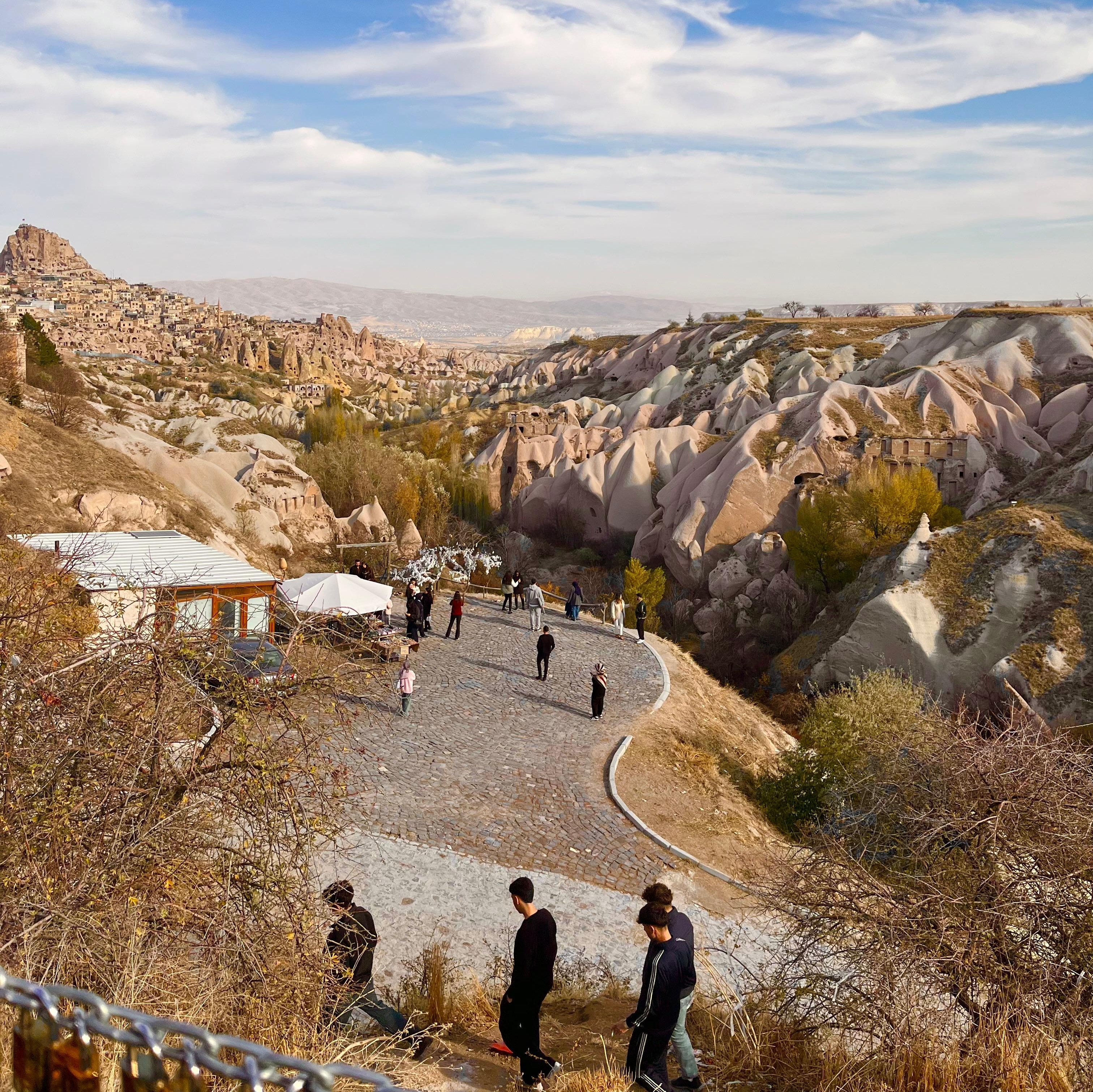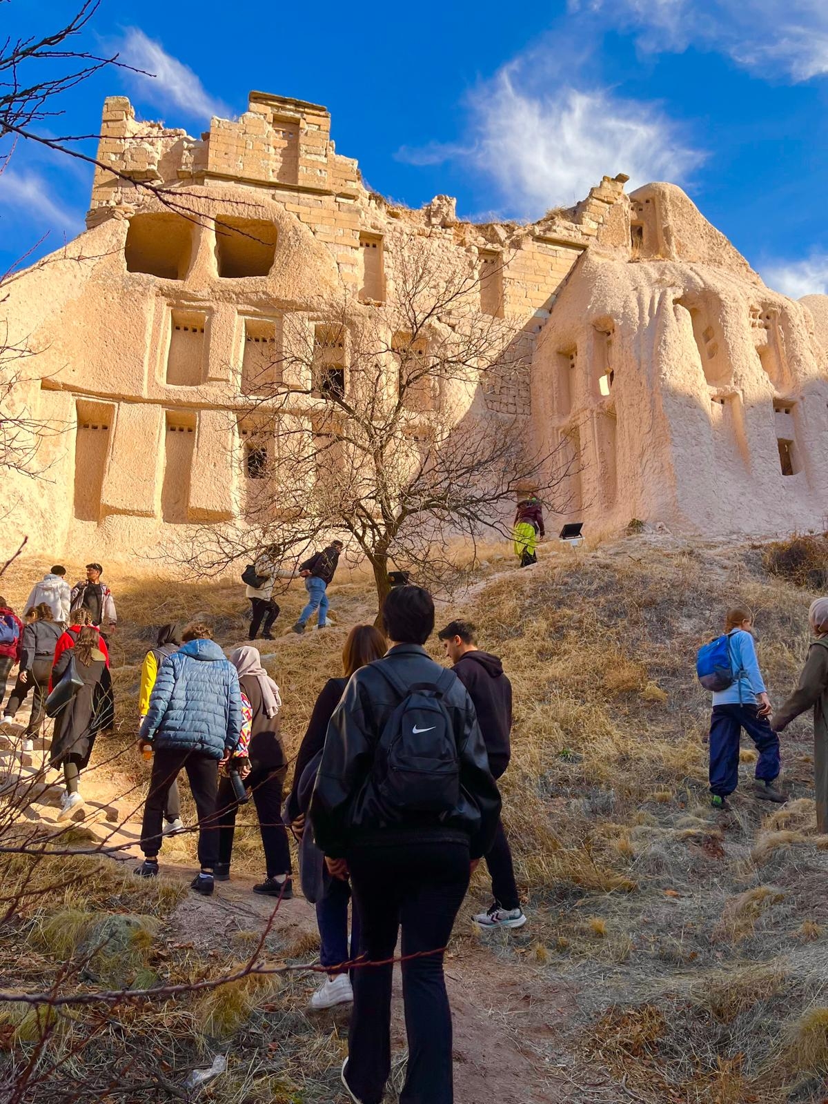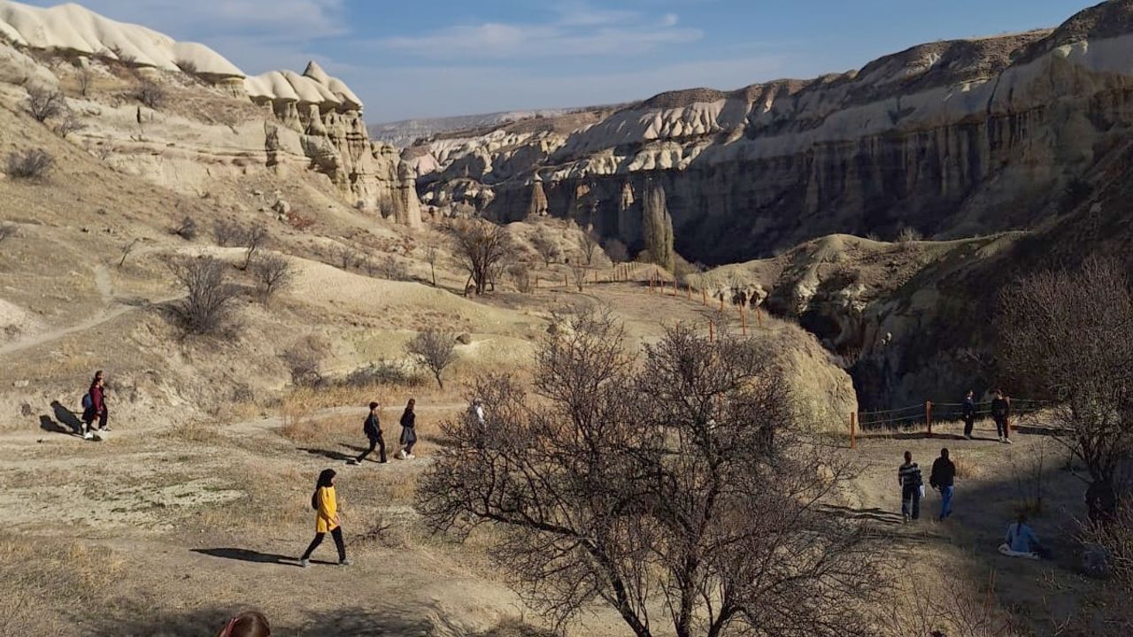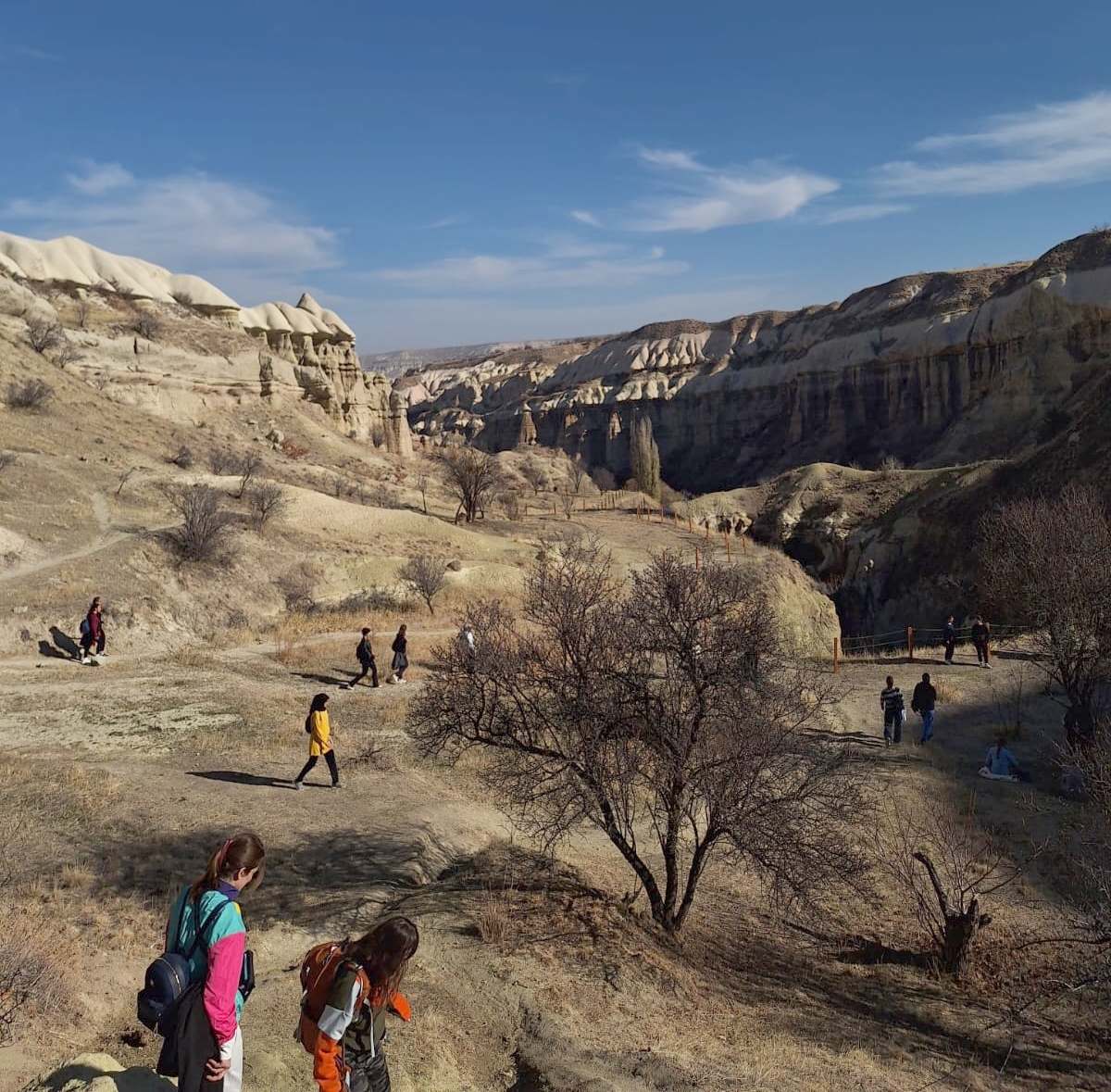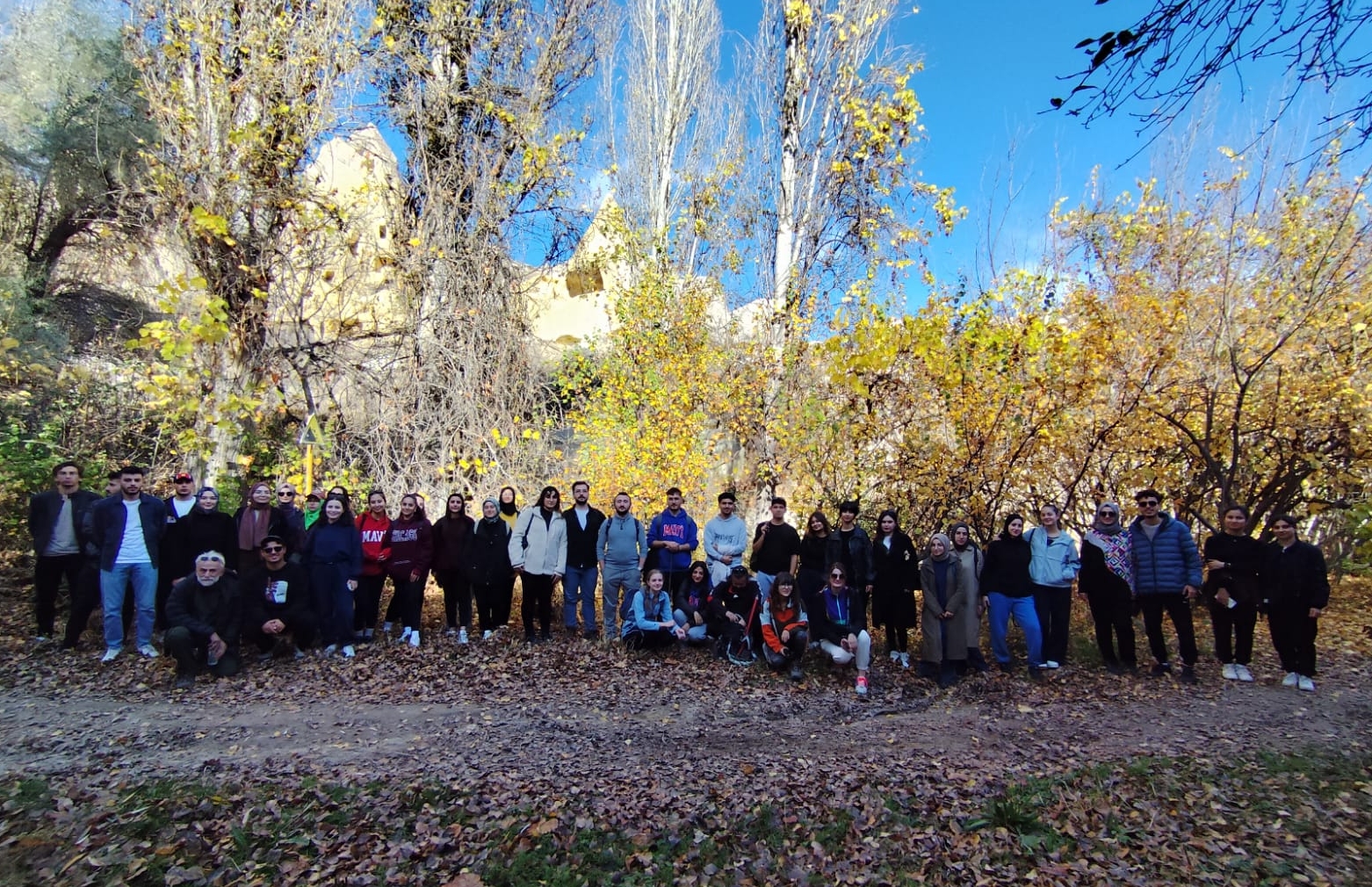 Kapadokya’nın doğal güzellikleriyle ön plana çıkan Güvercinlik Vadisi’nde gerçekleştirilen yürüyüşte katılımcılar, sonbaharın sıcak tonlarıyla bütünleşen vadide keyifli bir parkur deneyimi yaşadı. Doğanın huzur veren atmosferinde ilerleyen öğrenciler hem sosyal etkileşimlerde bulundu hem de sağlıklı yaşam farkındalığı kazandıracak etkinliklere katıldı.