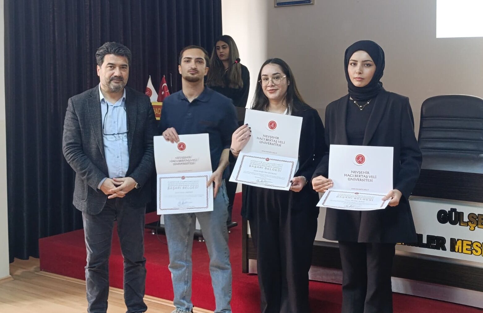 Nevşehir Hacı Bektaş Veli Üniversitesi (NEVÜ) Gülşehir Sosyal Bilimler Meslek Yüksekokulu (SBMYO), 2025-2026 Akademik Yılı Güz Dönemi’nde üstün akademik performans gösteren öğrencilerini başarı belgeleri ve kitap hediyeleriyle onurlandırdı.