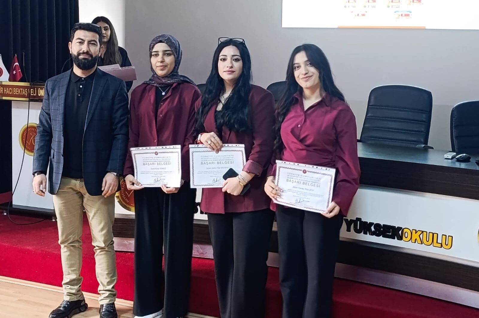 Gülşehir SBMYO’da düzenlenen ödül takdim töreninde, final sınavlarının ardından yapılan değerlendirmeler sonucunda; bütünleme sınavına girmeyen, alttan dersi bulunmayan ve kendi programı ile sınıf düzeyinde en yüksek genel not ortalamasına (GANO) sahip olan öğrenciler ödüle layık görüldü.