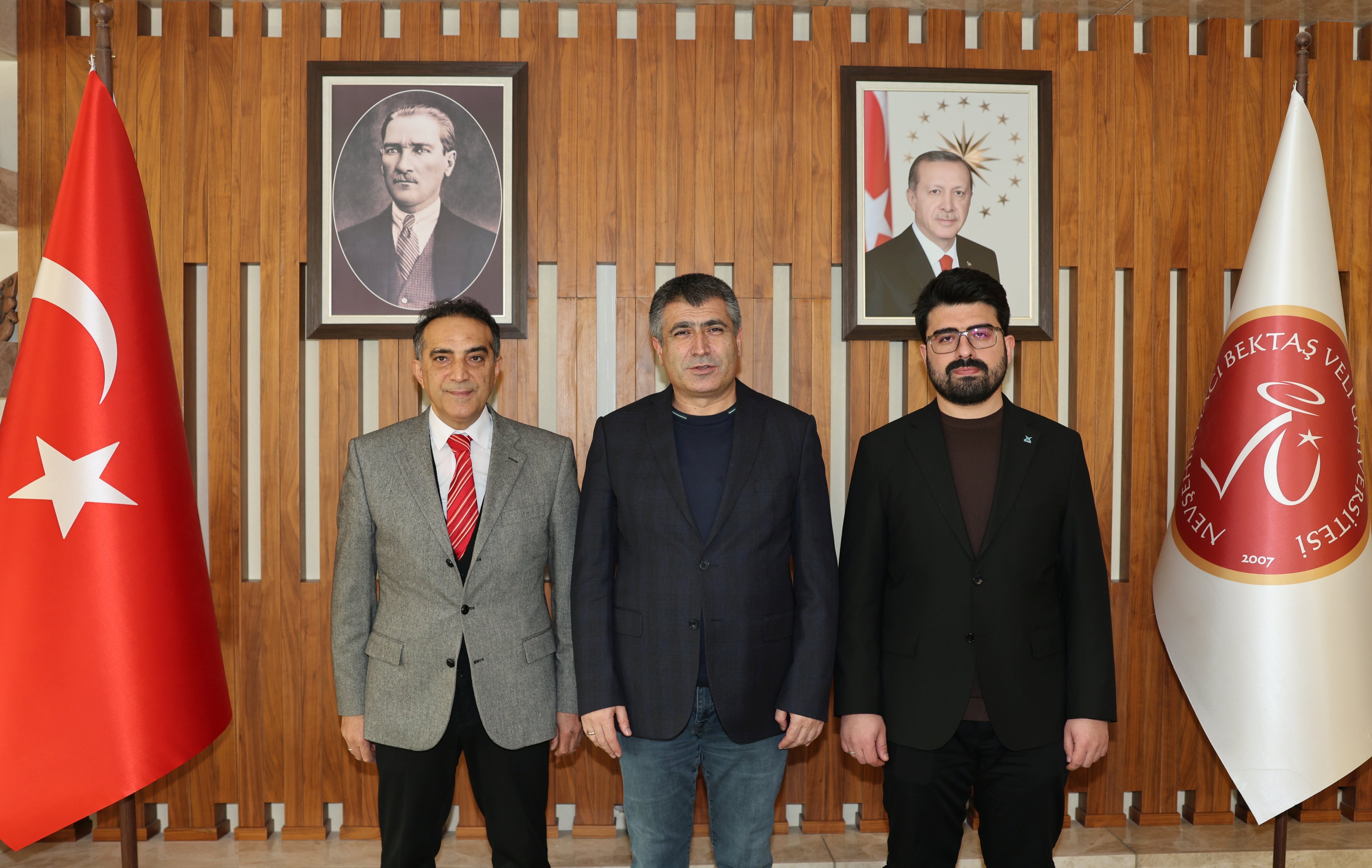 Protokol öncesinde TÜGVA Nevşehir İl Temsilcisi Muhammed Furkan Nalçacıoğlu, NEVÜ Rektörü Prof. Dr. Semih Aktekin’i makamında ziyaret etti. Ziyarette, NEVSEM Müdürü Doç. Dr. Metin Doğan da hazır bulundu. Nalçacıoğlu, TÜGVA tarafından yürütülen gençlik çalışmaları ve üniversite öğrencilerine yönelik projeler hakkında bilgi vererek, “İhtisas Akademi Projesi”nin hedeflerini Rektör Aktekin ile paylaştı.
