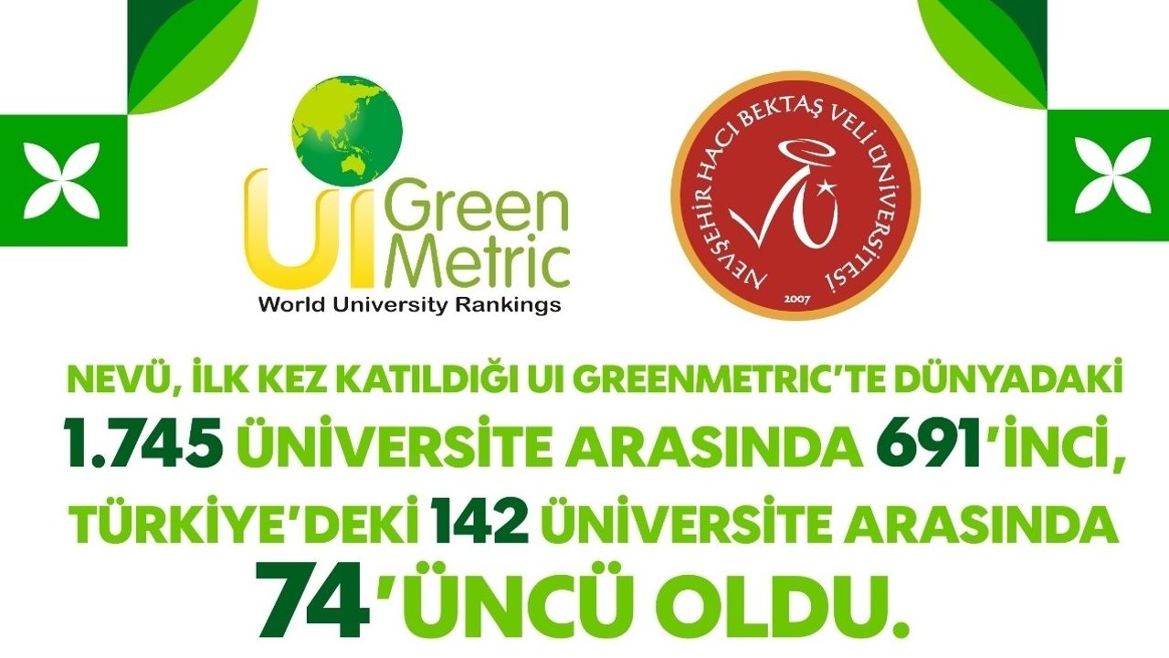 Nevşehir Hacı Bektaş Veli Üniversitesi (NEVÜ), dünya üniversitelerini çevreye duyarlılık ve sürdürülebilirlik açısından değerlendiren uluslararası UI greenmetric sıralamasına ilk kez katılarak kayda değer bir sonuç aldı. Bu yıl Türkiye'den 142, dünya genelinden ise toplam 1.745 üniversitenin yer aldığı sıralamada NEVÜ, ulusal listede 74., küresel listede ise 691. Sırada yer buldu. Üniversite, toplamda 6.243 puan toplayarak sürdürülebilirlik alanındaki çabalarını somut bir veriyle ortaya koydu.