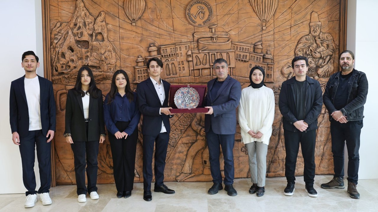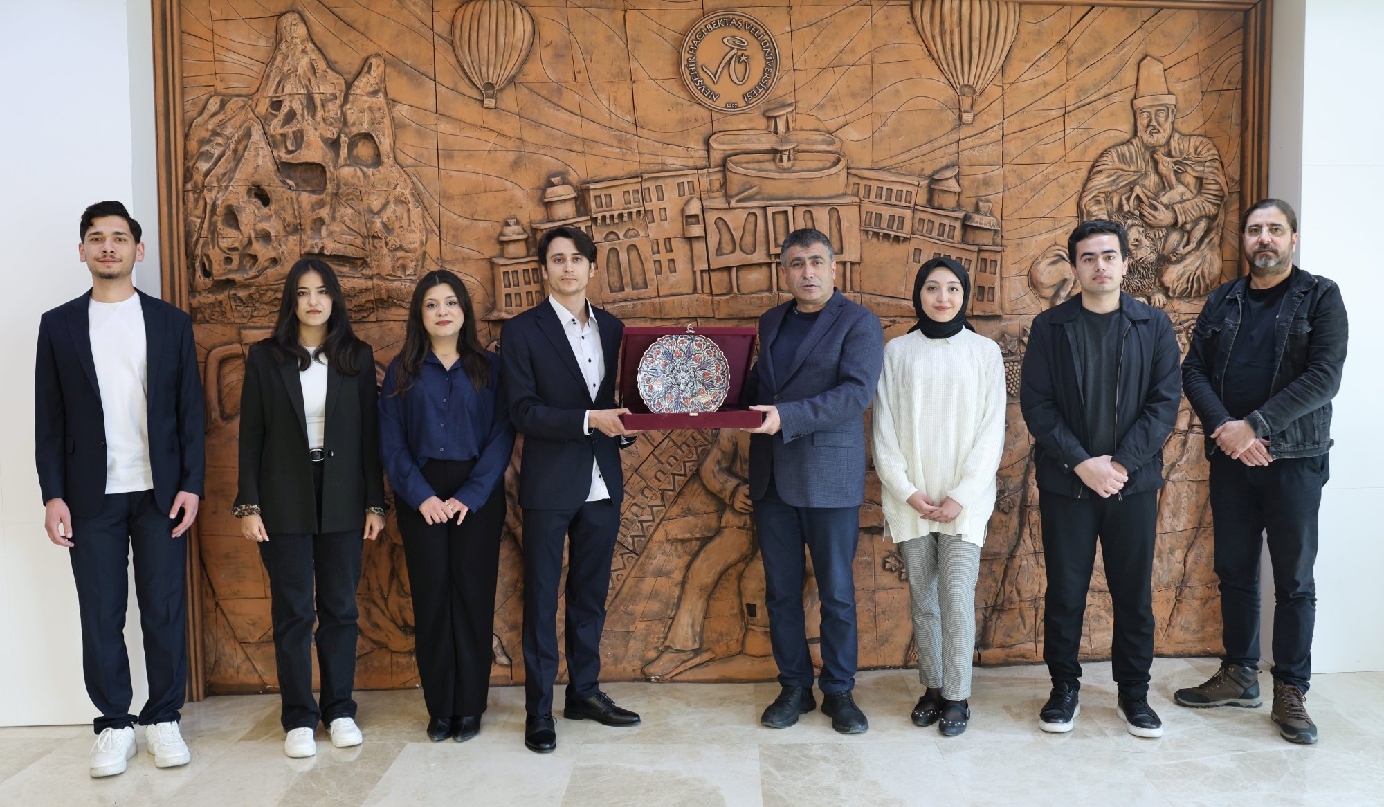 Nevşehir Hacı Bektaş Veli Üniversitesi (NEVÜ) İktisat ve İdari Bilimler Fakültesi Kamu Yönetimi Topluluğun Akademik Danışmanı Dr. Öğretim Üyesi Görkem Birinci ile birlikte topluluk liderleri Bedirhan Göçer, Zeliha Biçici, Bünyamin Şimşek, Cem Abay, Ceren Ceylan ve Havva Nur Tanrıkulu’nun yer aldığı heyet, Rektör Aktekin’i ziyaret etti.
