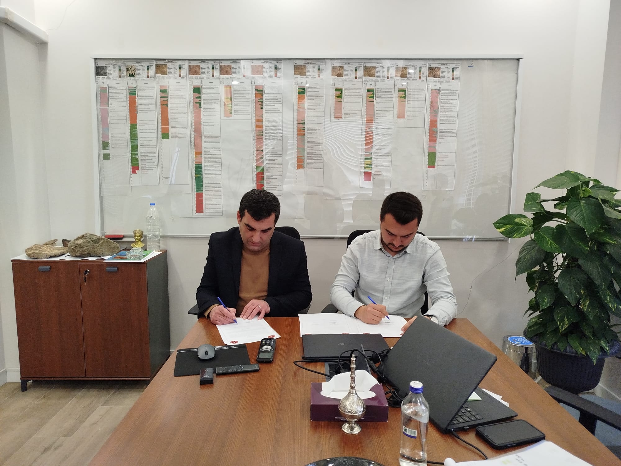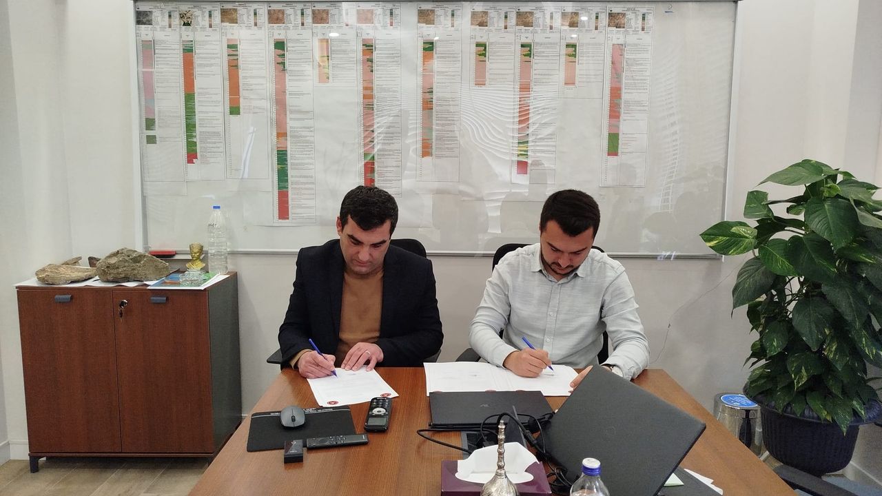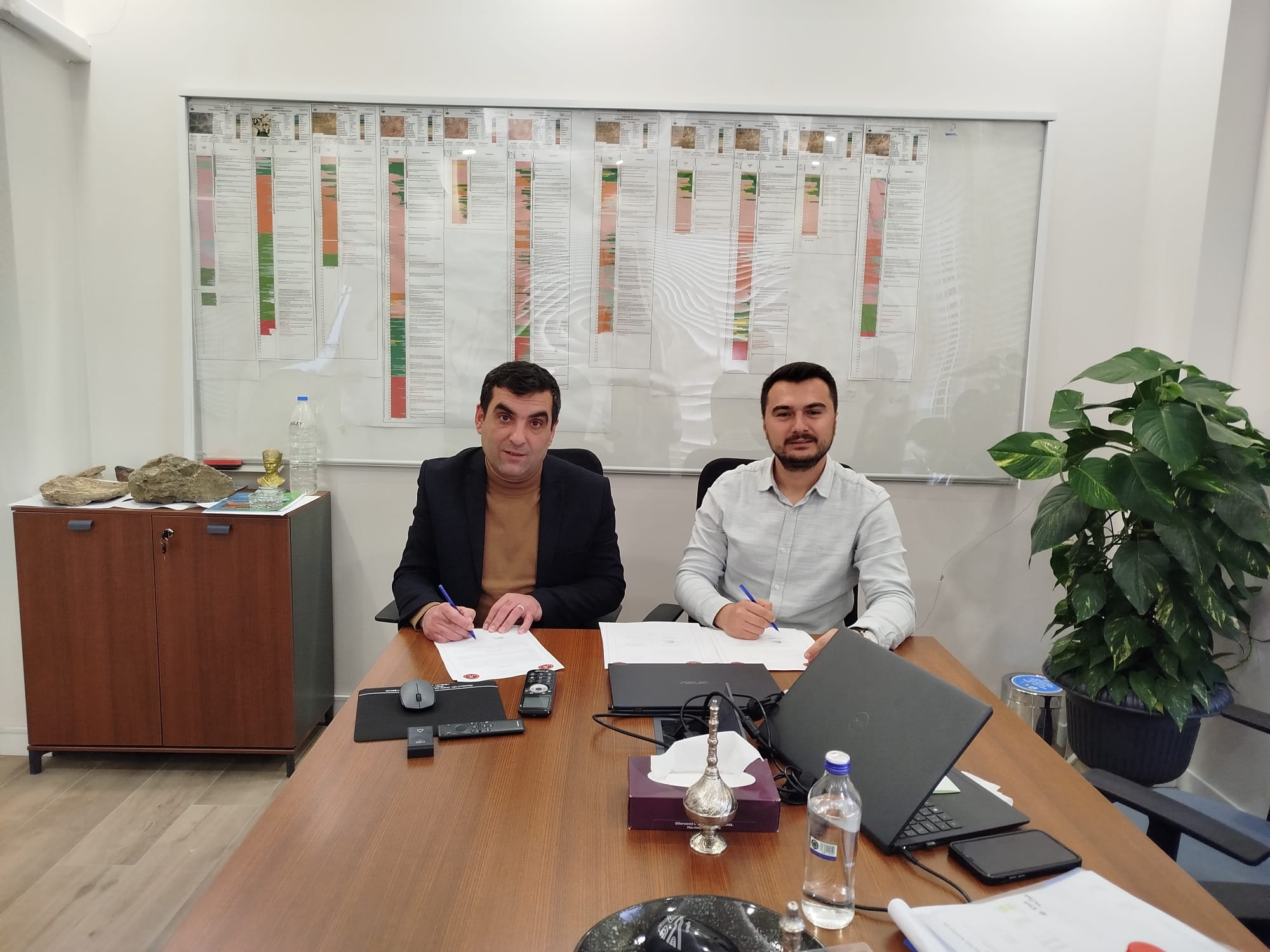 Meslek Yüksekokulu Müdürü Prof. Dr. Şenol Kartal ile INDICO₂ Doğal Karbondioksit Üretim Tesisi Müdürü Tuğrul Çam arasında imzalanan protokol törenine; Müdür Yardımcısı Öğr. Gör. Hilal Mutlu, Elektrik ve Enerji Bölümü Başkanı Öğr. Gör. Tahir Karakoç ve Elektrik ve Enerji Bölümü Danışmanı Öğr. Gör. Dr. Ayberk Calpbinici de katıldı.
