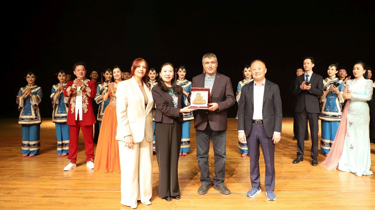 Gecenin sonunda Rektör Aktekin tarafından, Çin Halk Cumhuriyeti Ankara Büyükelçiliği Kültür Müsteşarı Zhou Meifen ve Shaanxi Huajin Dans ve Drama Topluluğu Sanat Yönetmeni Wang Jinghua’na plaket takdim edildi.
