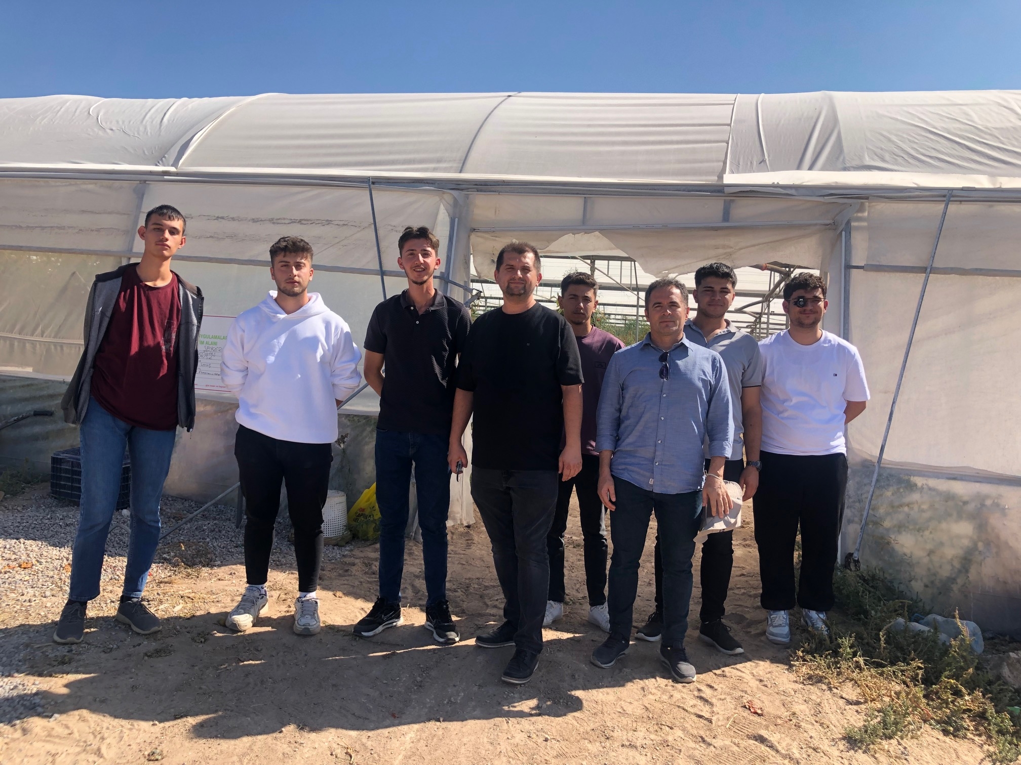 Organik Tarımda Hastalık ve Zararlı Yönetimi dersi kapsamında gerçekleştirilen teknik gezide, Bitkisel ve Hayvansal Üretim Bölümü öğretim üyesi Doç. Dr. Ata Eskin ve Avanos İlçe Tarım Orman Müdürlüğü’nden Ziraat Yüksek Mühendisi Serkan Sayın koordinasyonunda öğrenciler, Nevşehir’de hasat döneminde olan domates ve salatalık seralarını ziyaret etti.