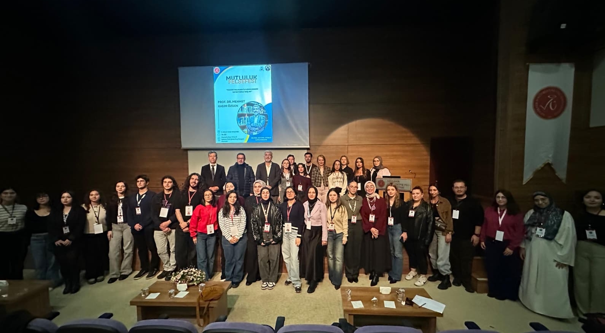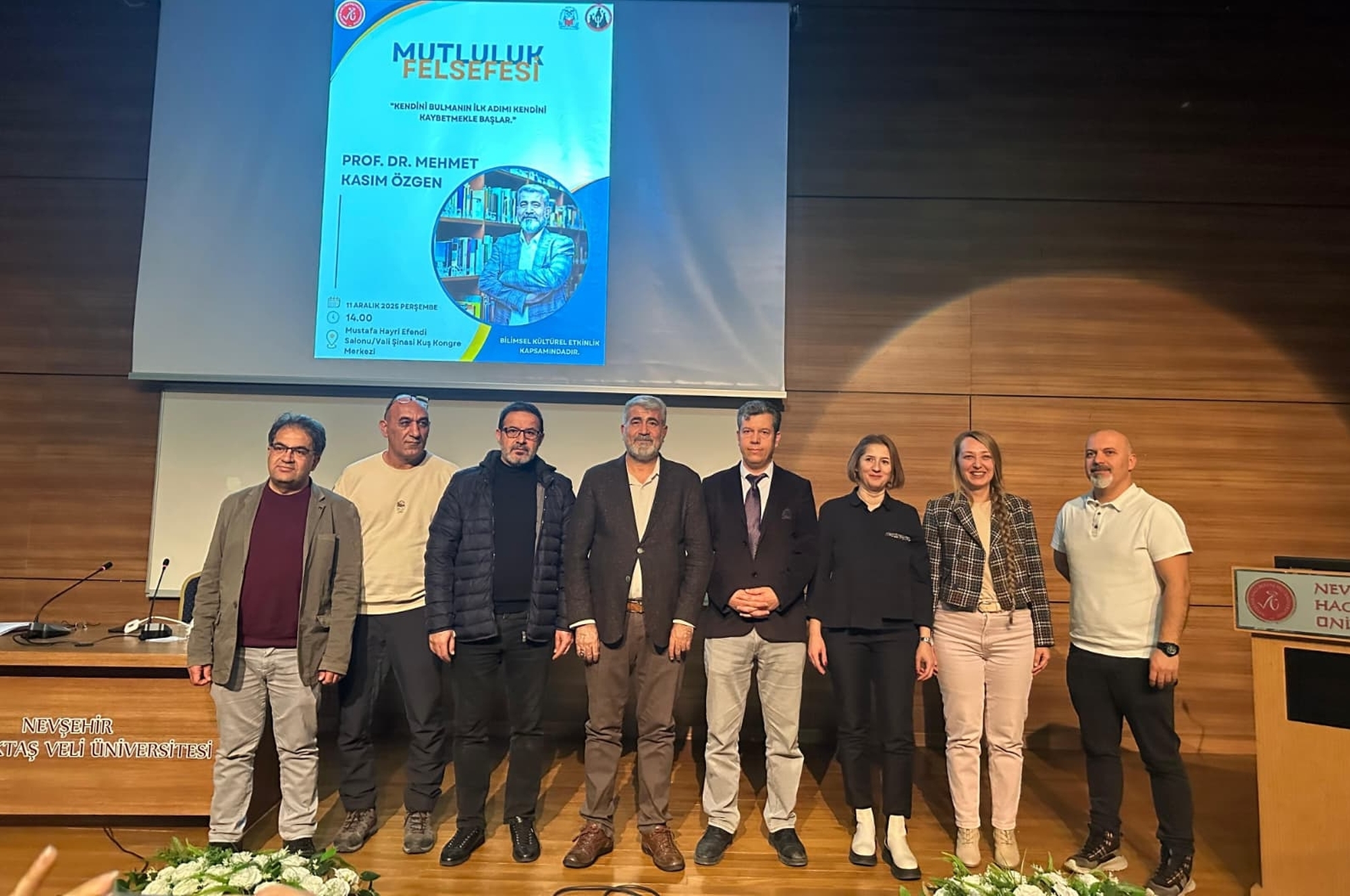 Nevşehir Hacı Bektaş Veli Üniversitesi (NEVÜ) Psikoloji Öğrenci Kulübü ile Felsefe Öğrenci Kulübü’nün ortaklaşa düzenlediği “Mutluluk Felsefesi” adlı seminerde, Erciyes Üniversitesi Felsefe Bölümü Öğretim Üyesi Prof. Dr. Mehmet Kasım Özgen öğrencilerle buluştu. Vali Şinasi Kuş Kültür ve Kongre Merkezi Mustafa Hayri Efendi Salonu’nda gerçekleştirilen seminere öğrenciler yoğun ilgi gösterdi.
