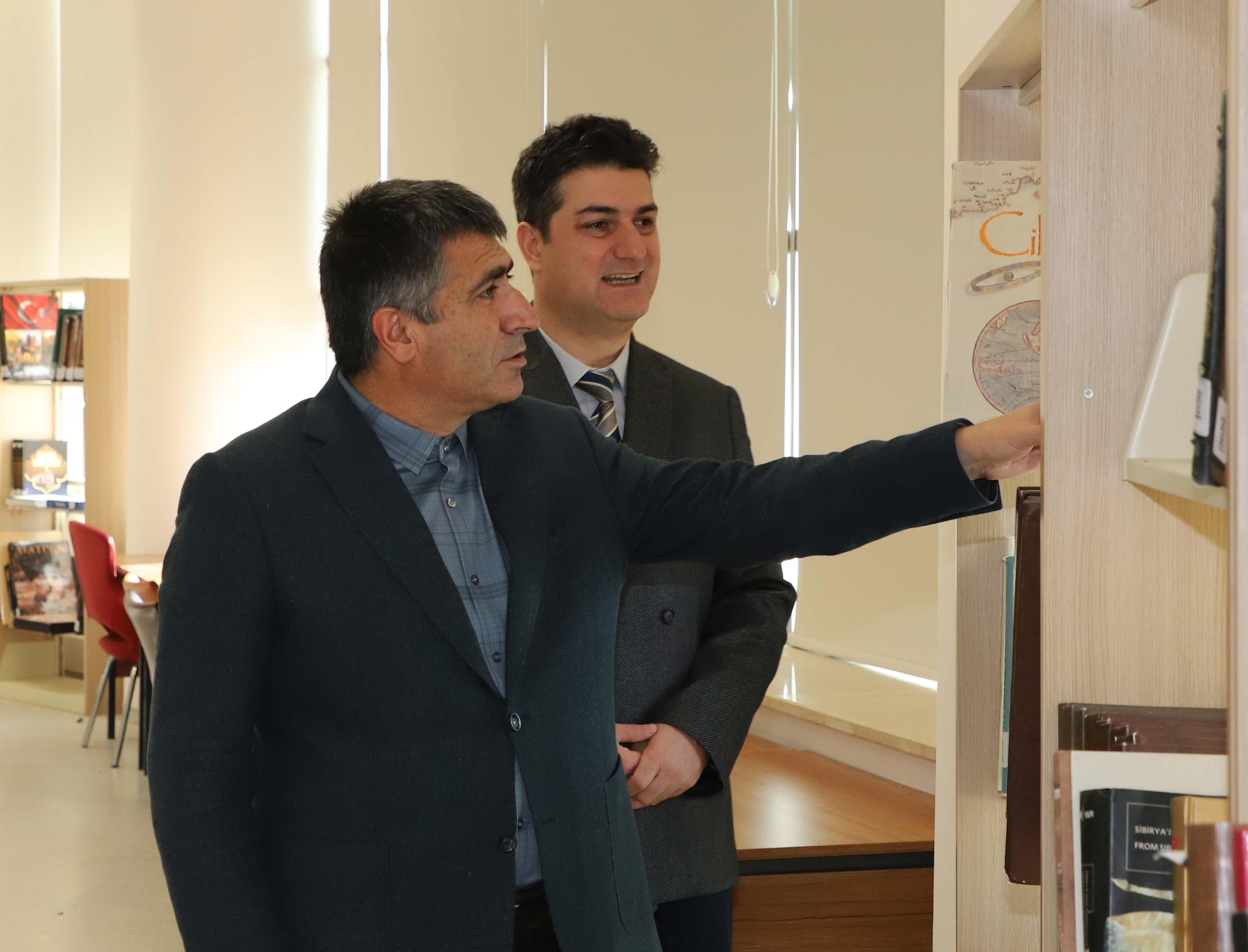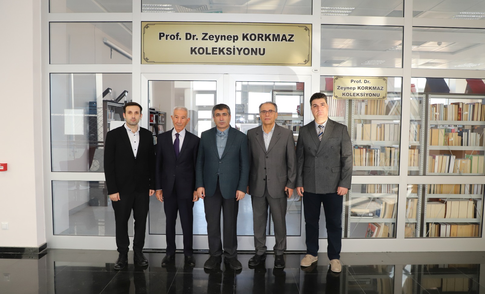 Nevşehir Hacı Bektaş Veli Üniversitesi (NEVÜ) Rektörü Prof. Dr. Semih Aktekin beraberinde Fen Edebiyat Fakültesi Dekanı Prof. Dr. H. Abdullah Şengül ve Dekan Yardımcısı Doç. Dr. Samed Özkan, Kütüphane ve Dokümantasyon Daire Başkanı Gökhan Onmuş ile birlikte NEVÜ Hoca Ahmet Yesevi Kütüphanesi içerisinde bulunan Nevşehirli bilim insanı Türkolog Prof. Dr. Zeynep Korkmaz’ın bağışladığı eserlerden oluşan koleksiyonun bulunduğu salonu inceledi.