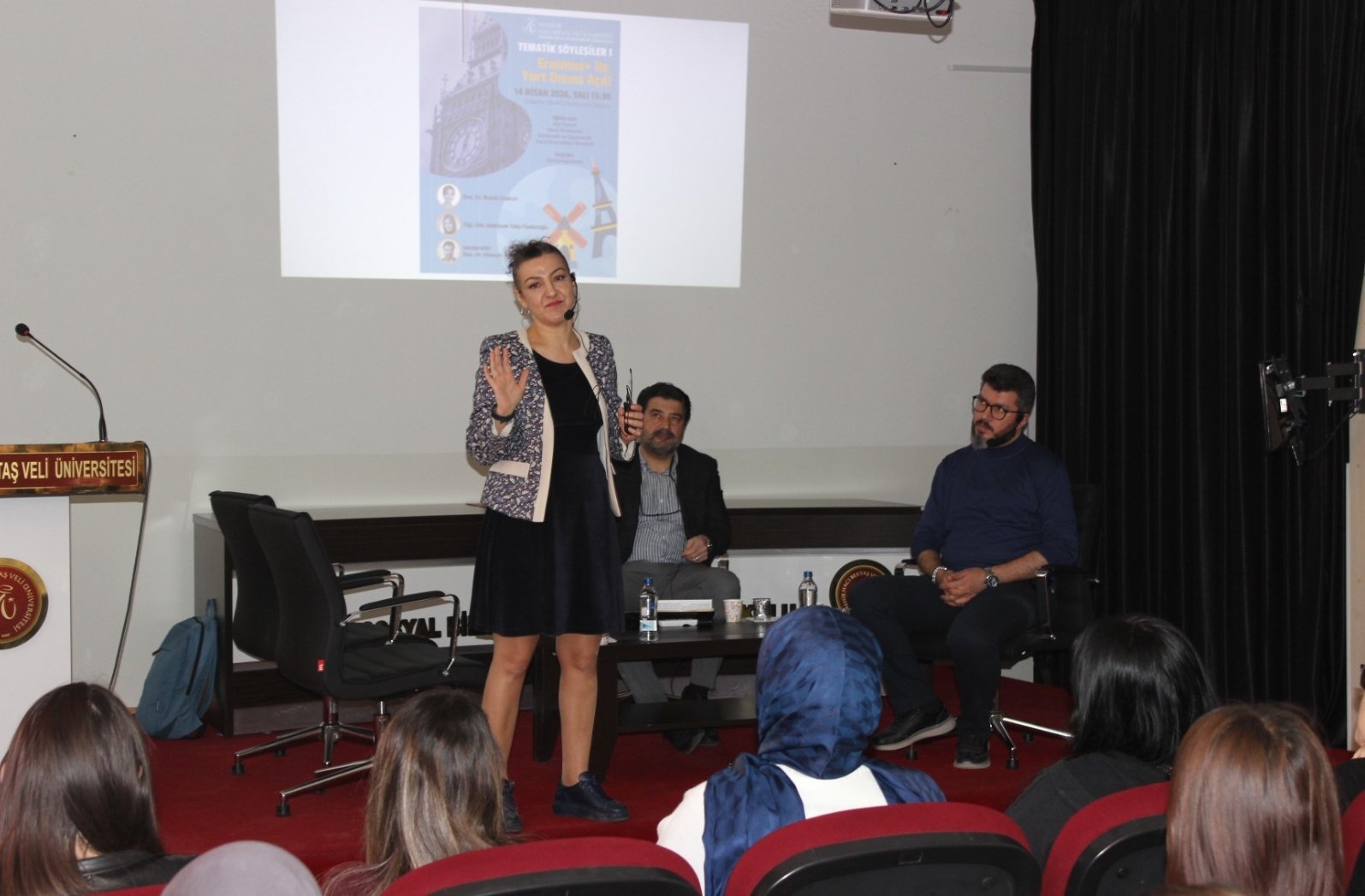 SBMYO Konferans Salonu'nda gerçekleştirilen söyleşinin moderatörlüğünü Gülşehir SBMYO Müdürü Doç. Dr. Hüseyin Aras üstlenirken, NEVÜ Uluslararası İlişkiler Ofis Koordinatörü Doç. Dr. Başak Coşkun ve Uluslararası İlişkiler Ofisi'nden Öğr. Gör. Şükrü Aydın konuşmacı olarak yer aldı.