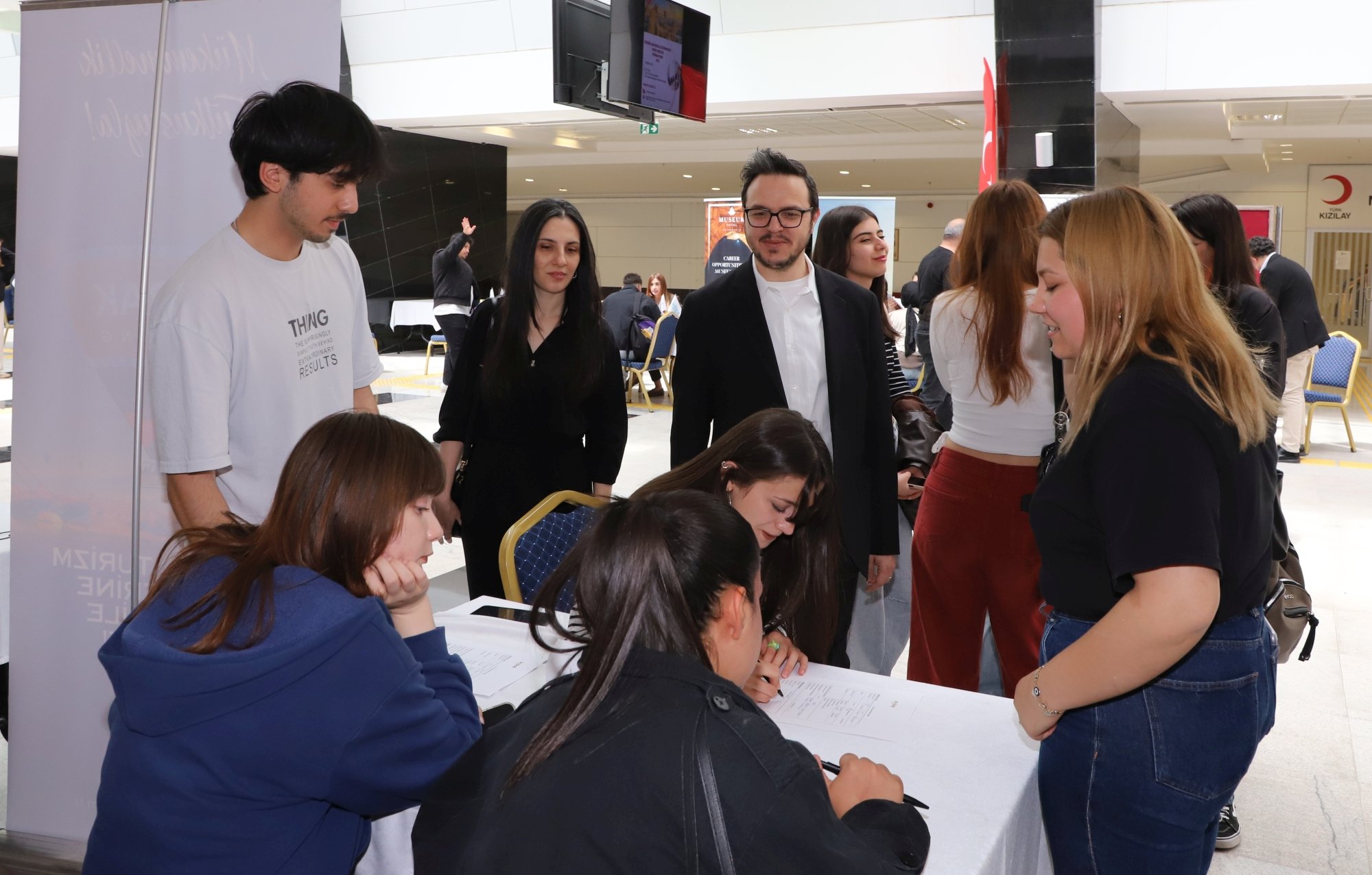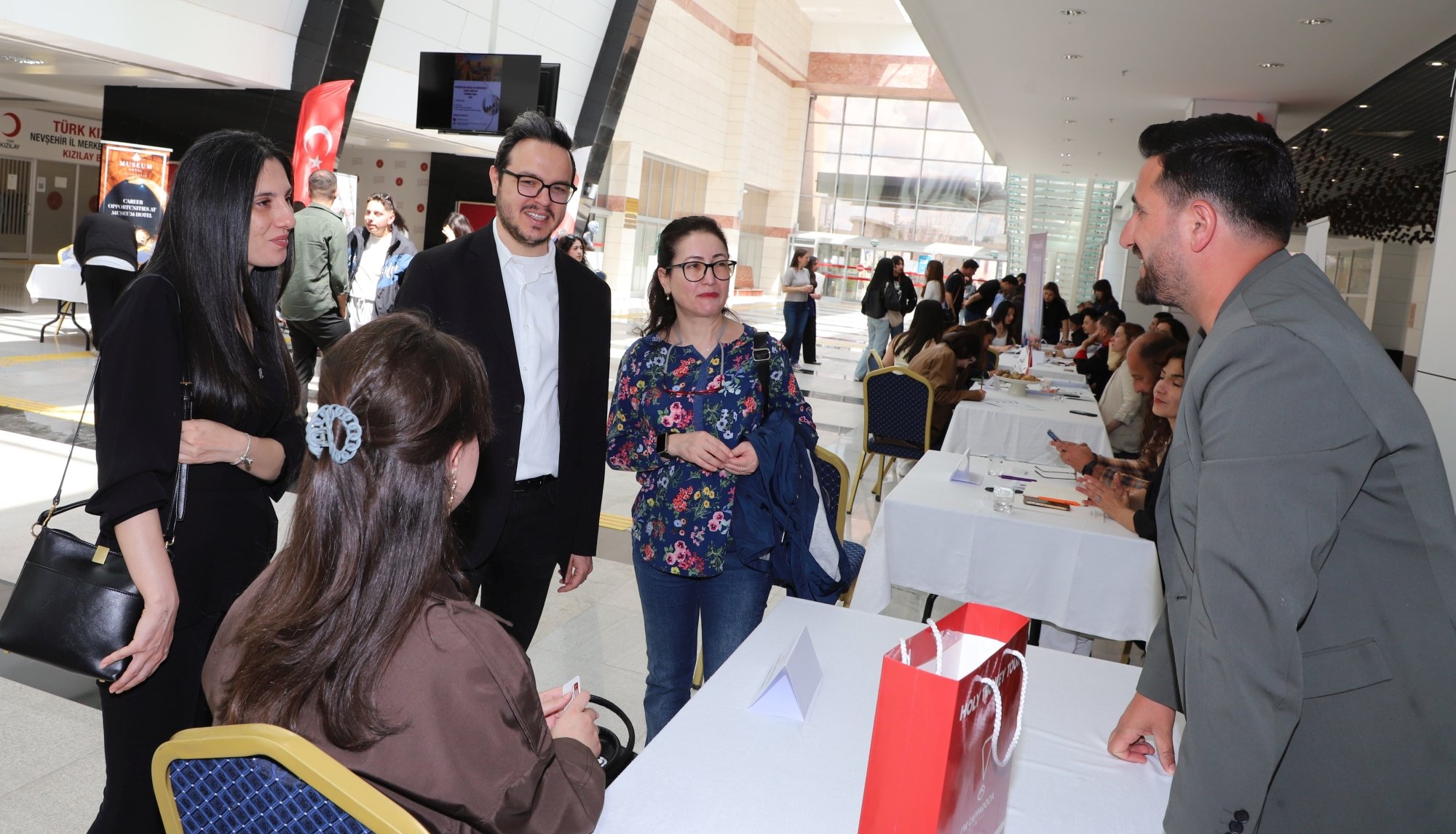 Nevşehir Hacı Bektaş Veli Üniversitesi (NEVÜ) Turizm Fakültesi ile Kariyer Planlama Uygulama ve Araştırma Merkezi (NÜKMER) iş birliğinde düzenlenen istihdam fuarında, turizm sektörünün önde gelen otel ve acente temsilcileri öğrencilerle bir araya geldi.