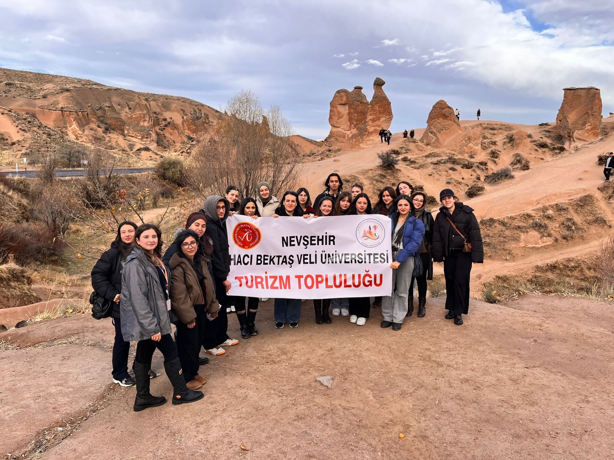 Nevşehir Hacı Bektaş Veli Üniversitesi (NEVÜ) Turizm Topluluğu tarafından topluluk üyelerine yönelik Kapadokya gezisi düzenlendi. Öğrencilerin bölgeyi yakından tanımaları ve turizm alanındaki bilgi birikimlerini sahada pekiştirmeleri amacıyla gerçekleştirilen gezi yoğun ilgi gördü.