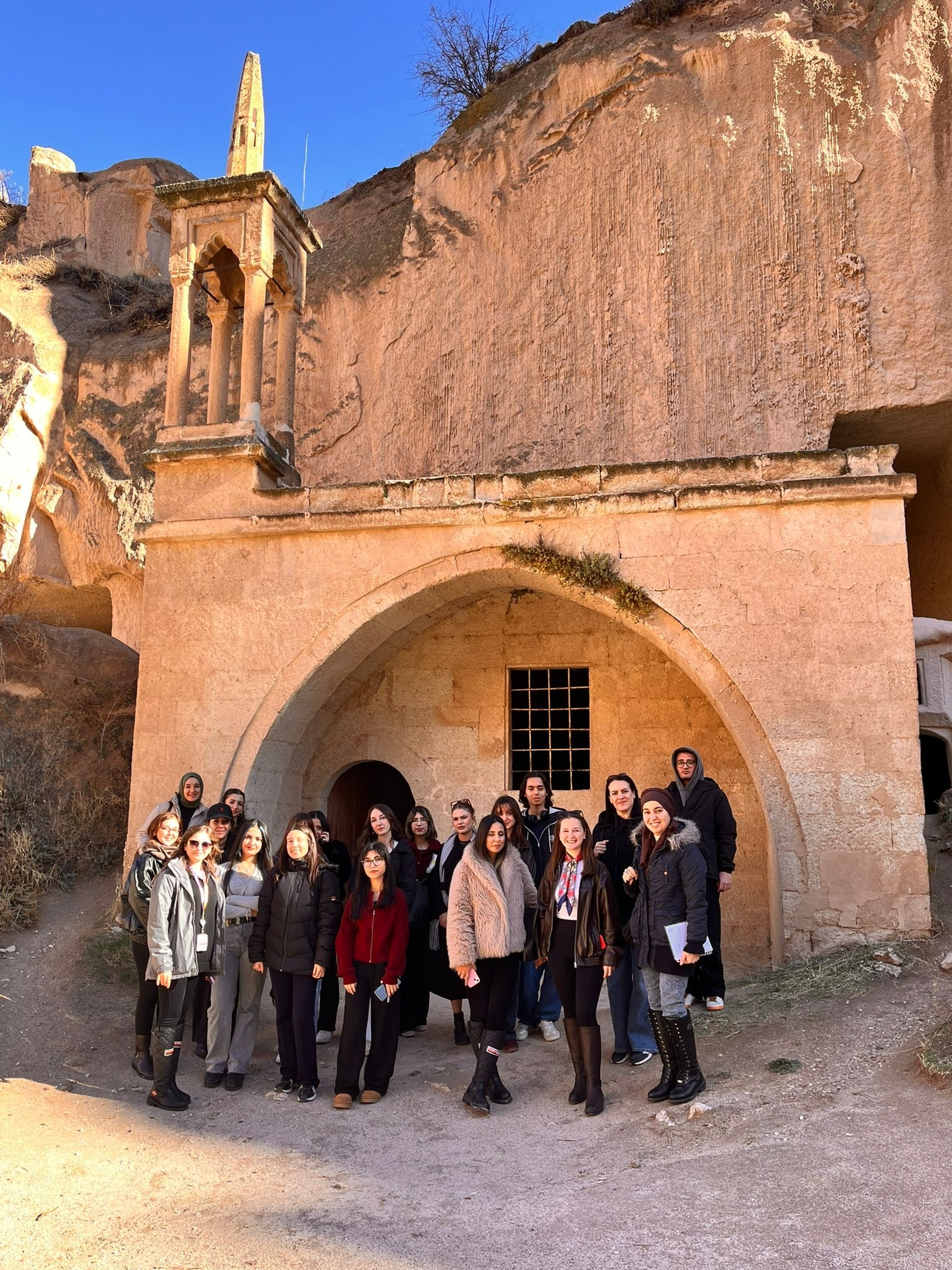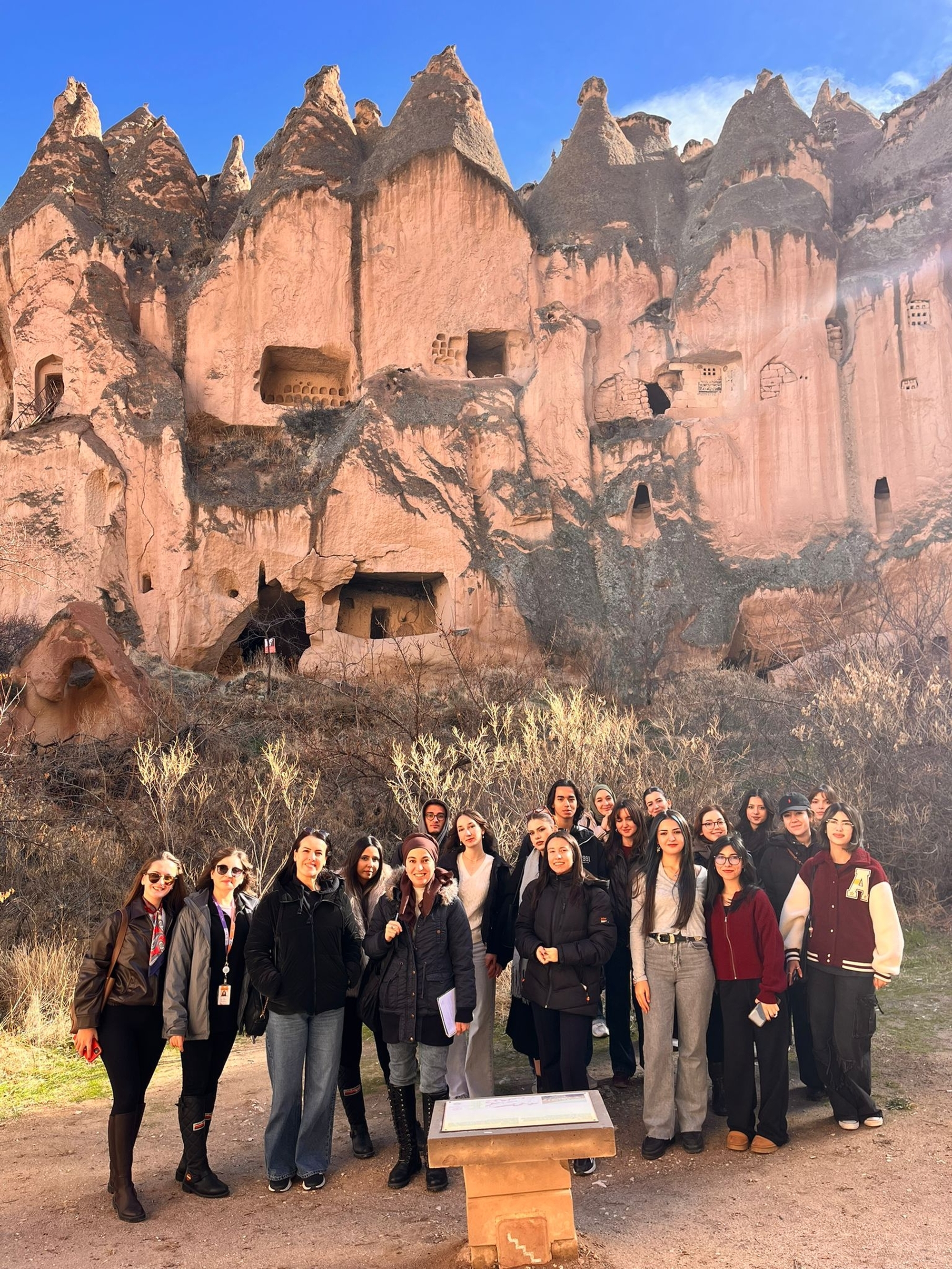 Turizm Topluluğu Akademik Danışmanları Arş. Gör. Rümeysa Unat ile Profesyonel Turist Rehberi Arş. Gör. Büşra Yamangil tarafından düzenlenen etkinlik kapsamında Kapadokya’nın önemli turistik destinasyonları ziyaret edildi. Etkinlikte öğrenciler; Zelve Açık Hava Müzesi, Paşabağları Ören Yeri, Devrent Vadisi ve bölgenin geleneksel el sanatlarının yaşatıldığı çömlek atölyesinde incelemelerde bulundu.