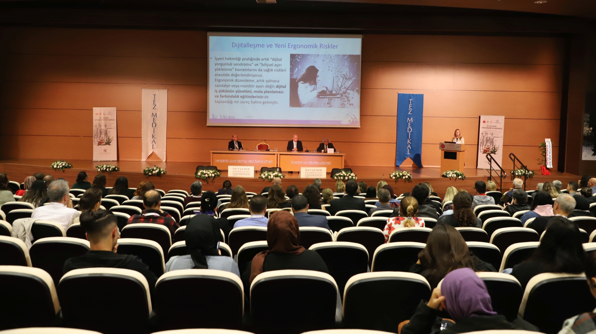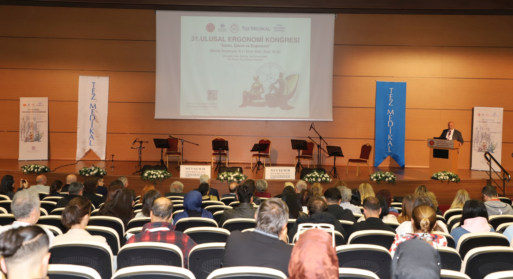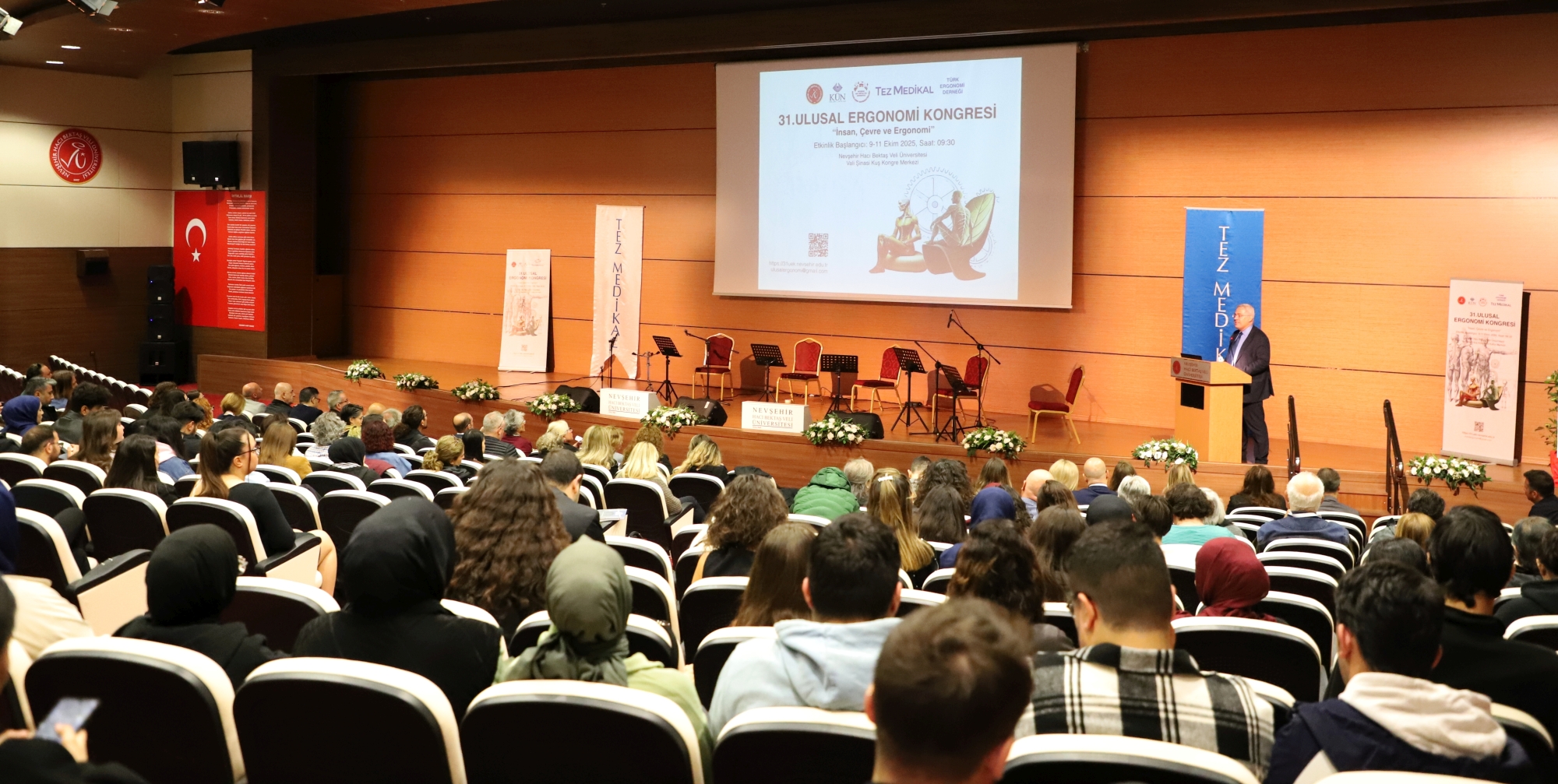 Nevşehir Hacı Bektaş Veli Üniversitesi (NEVÜ) ev sahipliğinde ve Kapadokya Üniversitesi (KÜN), NEVÜ İhtisaslaşma Koordinatörlüğü, Tez Medikal ve Türk Ergonomi Derneği iş birliğiyle düzenlenen ve teması “İnsan, Çevre ve Ergonomi” olan “31. Ulusal Ergonomi Kongresi” başladı.