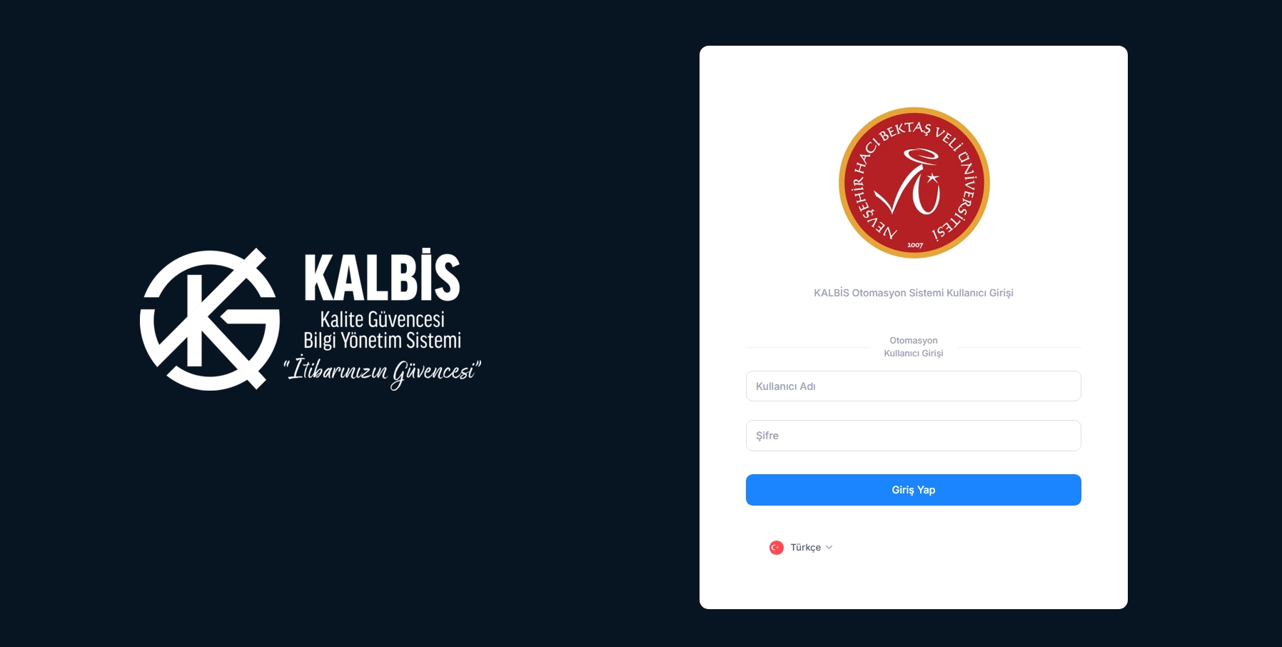 Nevşehir Hacı Bektaş Veli Üniversitesi (NEVÜ), kalite güvencesi süreçlerinin dijital ortamda etkin, sistematik ve izlenebilir biçimde yürütülmesini sağlamak amacıyla hayata geçirilen Kalite Güvencesi Bilgi Yönetim Sistemi (KALBİS) kapsamında kullanıcı eğitimlerini tamamladı.