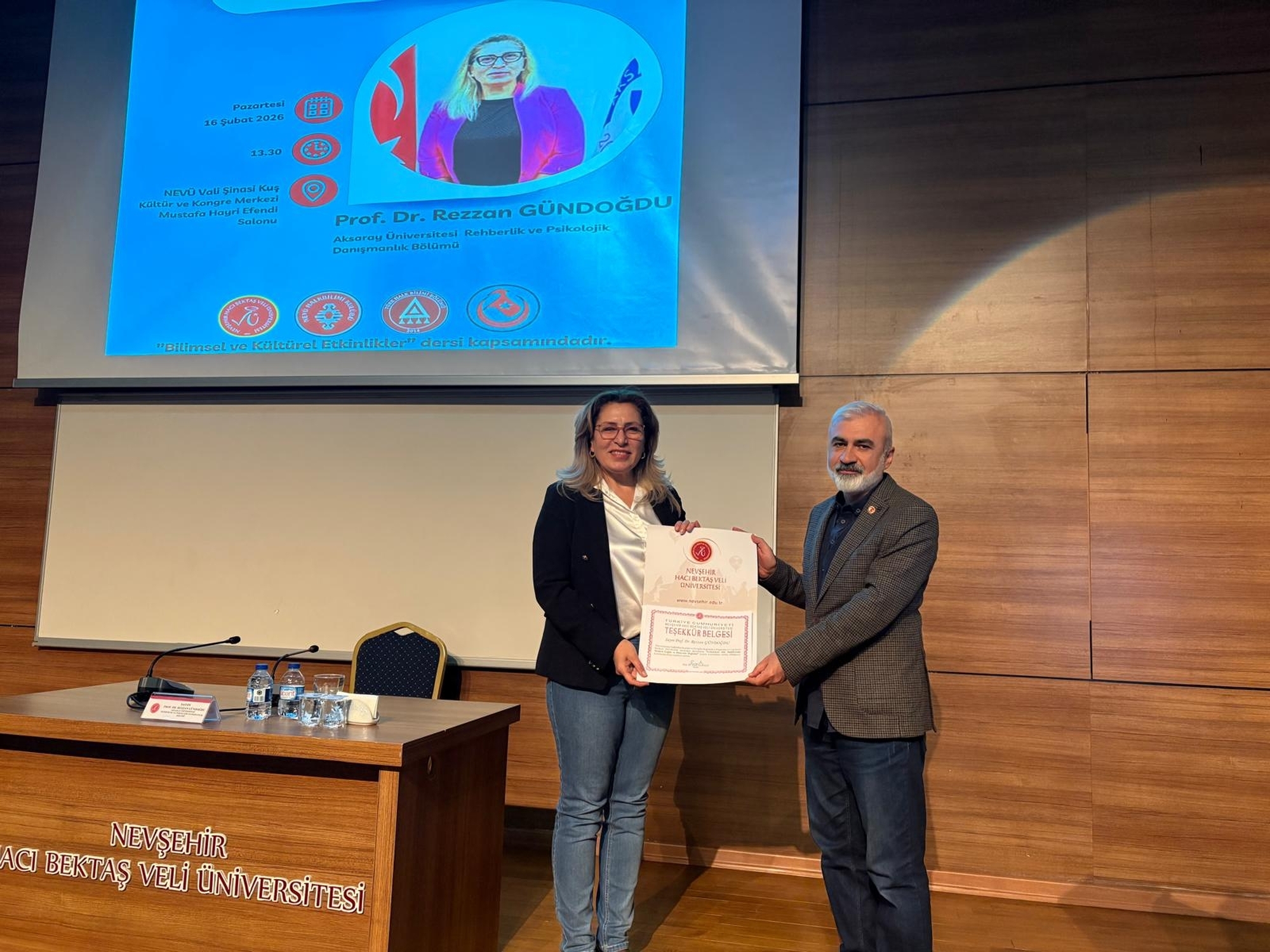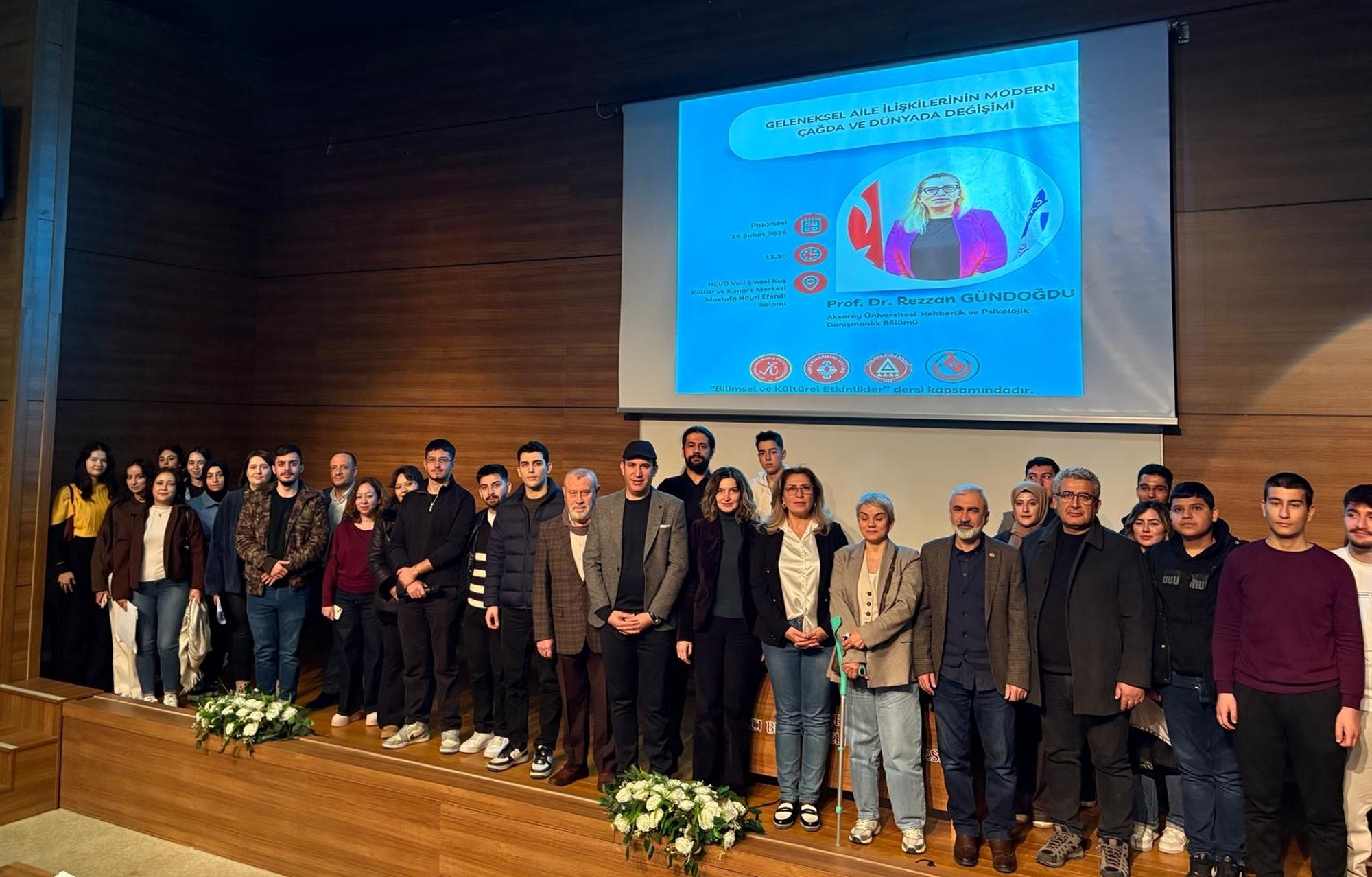 Nevşehir Hacı Bektaş Veli Üniversitesi (NEVÜ) Türk Halkbilimi Bölümü, Kapadokya Araştırma ve Uygulama Merkezi (NEVKAM) ve Türk Halkbilimi Kulübü iş birliğiyle Aksaray Üniversitesi Rehberlik ve Psikolojik Danışmanlık Anabilim Dalı öğretim üyesi Prof. Dr. Rezzan Gündoğdu’nun konuşmacı olduğu “Geleneksel Aile İlişkilerinin Modern Çağda ve Dünyada Değişimi” konulu konferans düzenlendi.
