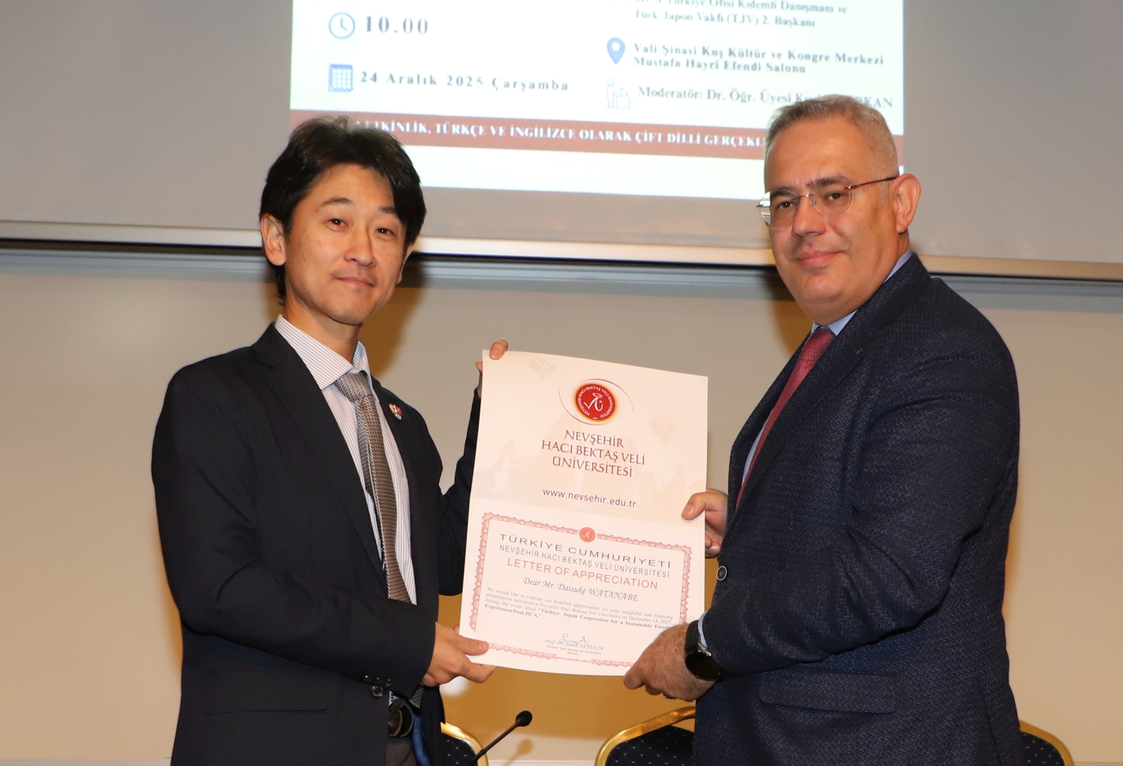 Nevşehir Hacıbektaş Veli Üniversitesi (NEVÜ) Uluslararası İlişkiler Topluluğu (UİT) tarafından, Konferans Serisi-XII kapsamında “Sürdürülebilir Bir Gelecek İçin Türkiye-Japonya İşbirliği: Japonya Uluslararası İşbirliği Ajansı (JICA) Deneyimleri” başlıklı etkinlik düzenlendi.