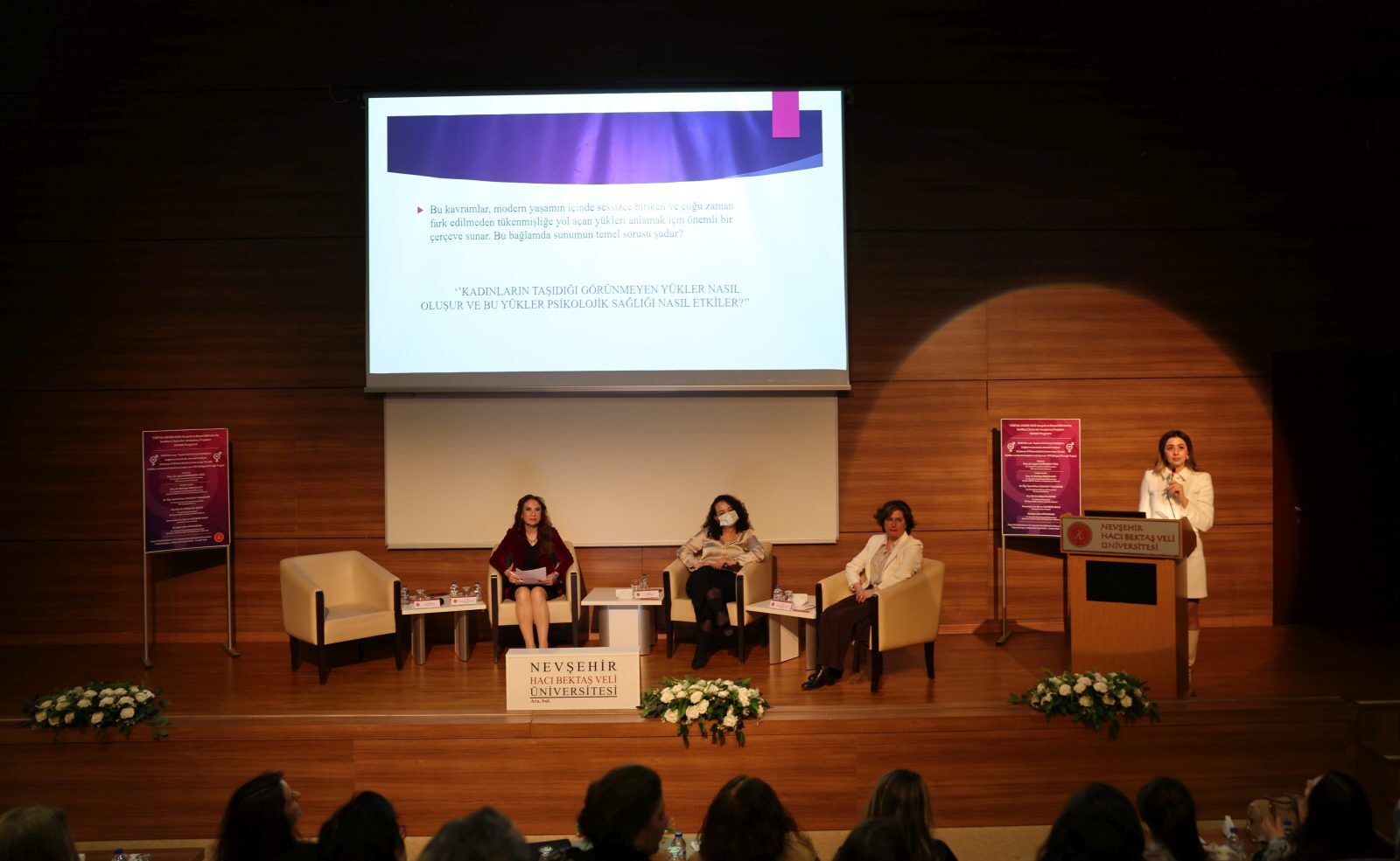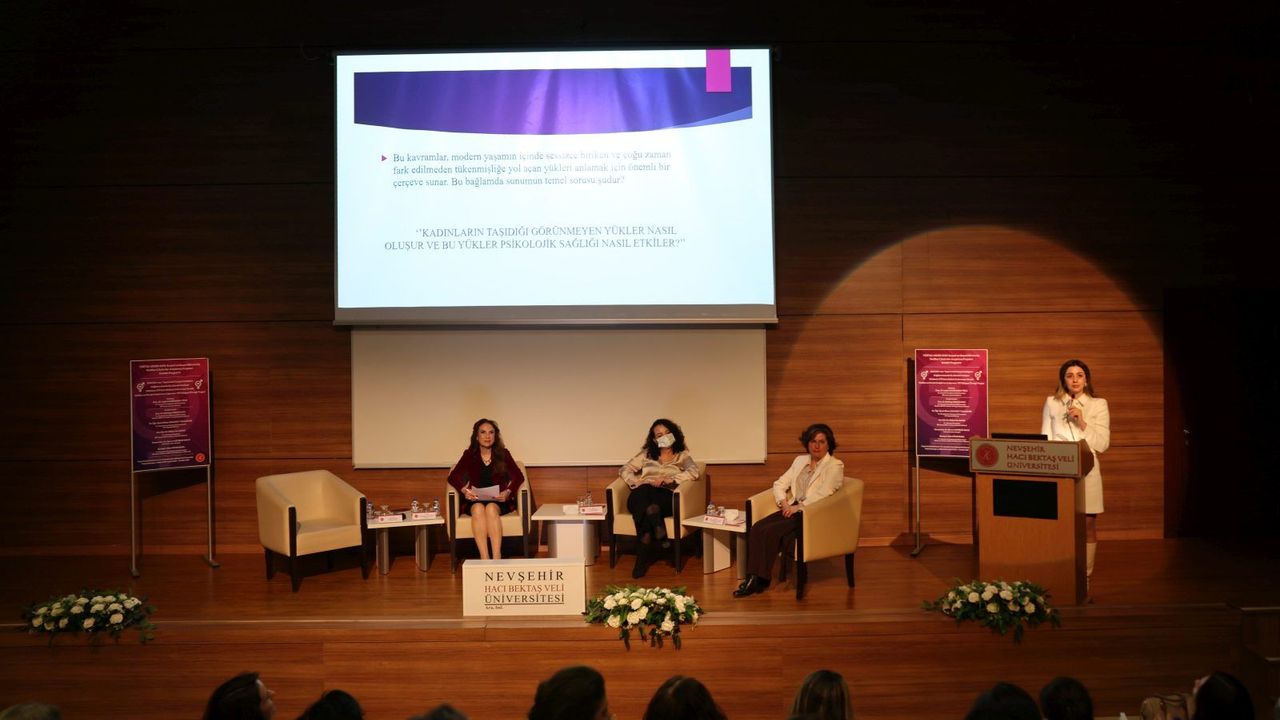 Etkinlikte, TKB Nevşehir Şubesi Dernek Başkanı Derya Yazar Atasever, “Bir Kadının Farkındalık Yolculuğu” başlıklı bir sunum gerçekleştirdi. Ardından Uzm. Dr. Selda Yavuz ve Klinik Psikolog Merve Öztürk, “Görünmeyen Yükler, Sessiz Yorgunluk: Kadınlarda Duygusal Emek ve Tükenmişlik” başlıklı sunumuyla kadınların toplumsal yaşamda üstlendikleri psikolojik süreçleri ele aldı.