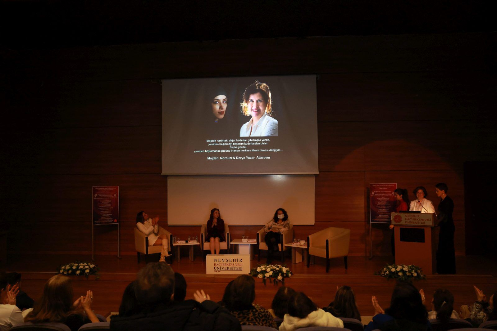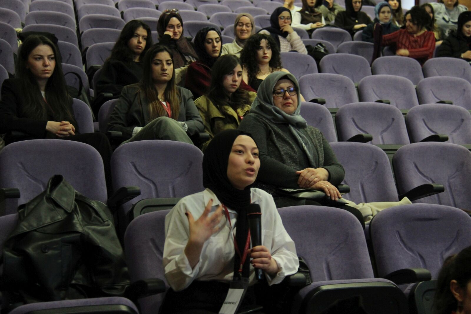 Programın söyleşi bölümü ise, Doç. Dr. Leyla Kahraman Yüce’nin moderatörlüğünde gerçekleştirilen “Kadınların Yolculuğu: Yaşam Deneyiminden Psikolojik Güçlenme ve Siyasal Mücadeleye” başlıklı oturum ile devam etti. Görünmeyen yüklerin fark edildiği, sessiz yorgunlukların kolektif bir bilince dönüştüğü ve her kadının kendi hikâyesinin öznesi olduğu bir gelecek inşasını konu alan oturum, katılımcıların interaktif soru ve cevaplarının ardından sona erdi.