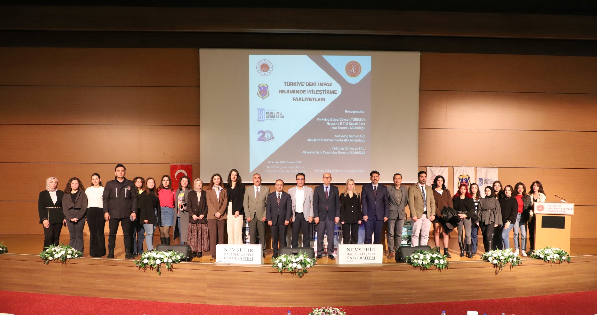 NEVÜ Şinasi Kuş Kültür ve Kongre Merkezi’nde düzenlenen programa; Nevşehir Cumhuriyet Savcısı Çağatay Akça, Nevşehir E Tipi Kapalı Ceza İnfaz Kurumu Müdürü Ahmet Yıldız, Nevşehir Açık Ceza İnfaz Kurumu Müdürü Murat Demir, Nevşehir Denetimli Serbestlik Müdürü Ali Bayrak, Nevşehir Denetimli Serbestlik Müdür Yardımcıları Deniz Bulduk Karakoca ve Murat Bayrak, Fen Edebiyat Fakültesi Dekan Yardımcısı Doç. Dr. Murat Gür, Sosyoloji Bölümü, Felsefe Bölümü ve Psikoloji Bölümü öğretim üyeleri ve öğrencileri başta olmak üzere akademisyenler, idari personel ve öğrenciler katıldı.
