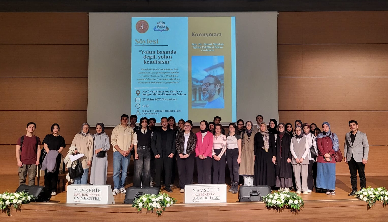 Nevşehir Hacı Bektaş Veli Üniversitesi (NEVÜ) Kişisel Gelişim ve Motivasyon Kulübünün düzenlediği, Eğitim Fakültesi Dekan Yardımcısı Doç. Dr. Davut Sarıtaş’ın konuşmacı olduğu “Yolun Başında Değil, Yolun Kendisisin” başlıklı söyleşi gerçekleştirildi.