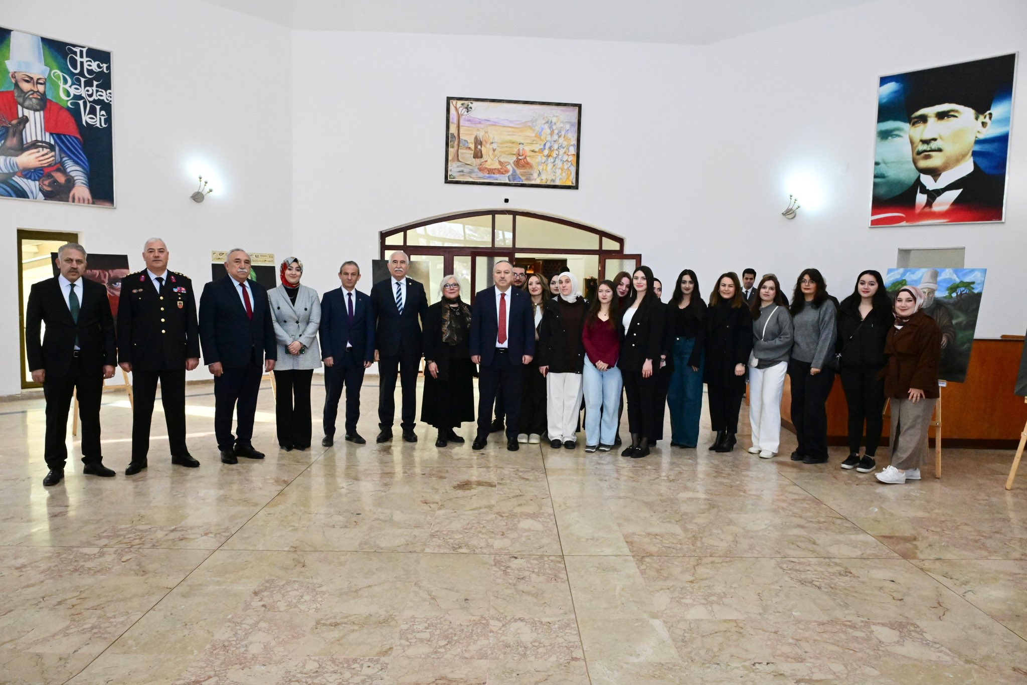 Sergide, öğrenci ve sanatçıların Atatürk’ün ilke ve devrimlerini, Hacıbektaş’ın kültürel değerlerini ve Kapadokya’nın eşsiz doğal güzelliklerini konu alan eserleri bir araya getirildi. Ayrıca yapay zeka teknolojileri ile üretilen modern sanat eserleri de sergide yer aldı.