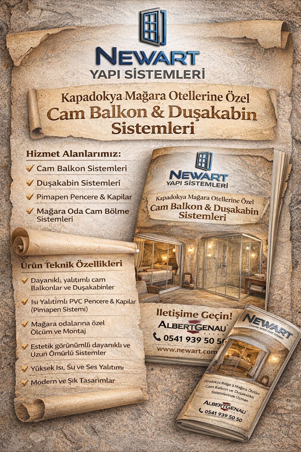 Kapadokya’nın eşsiz taş mimarisini modern yapı teknolojileriyle buluşturan NEWART Yapı Sistemleri, Nevşehir Merkez’de açılan yeni iş yeriyle bölge halkına ve işletmelere hizmet vermeye başladı. Açılışa özel başlatılan Ramazan kampanyasıyla dikkat çeken firma, özellikle butik mağara otellerine yönelik özel cam balkon ve duşakabin sistemleriyle dikkat çekiyor.