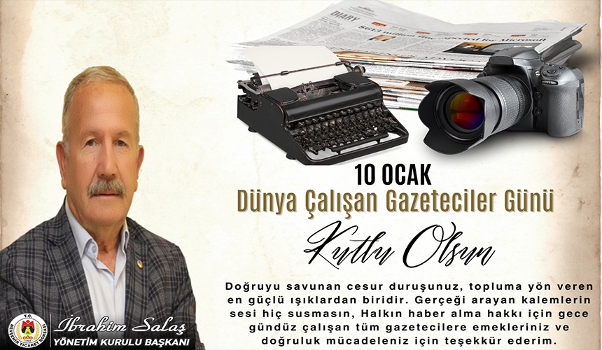Nevşehir Ticaret Borsası (NTB) Yönetim Kurulu Başkanı İbrahim Salaş, 10 Ocak Çalışan Gazeteciler Günü dolayısıyla bir kutlama mesajı yayımladı. Salaş, mesajında basın kuruluşlarının devletin şeffaflaşmasına, gelişmesine ve güçlenmesine tarih boyunca önemli katkılar sunduğunu ifade etti.