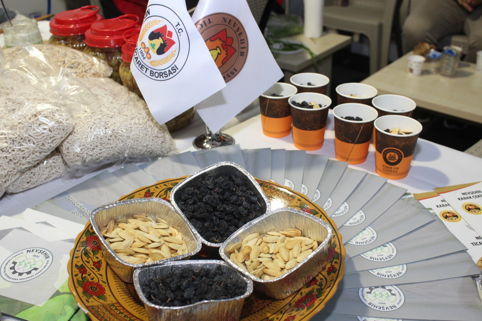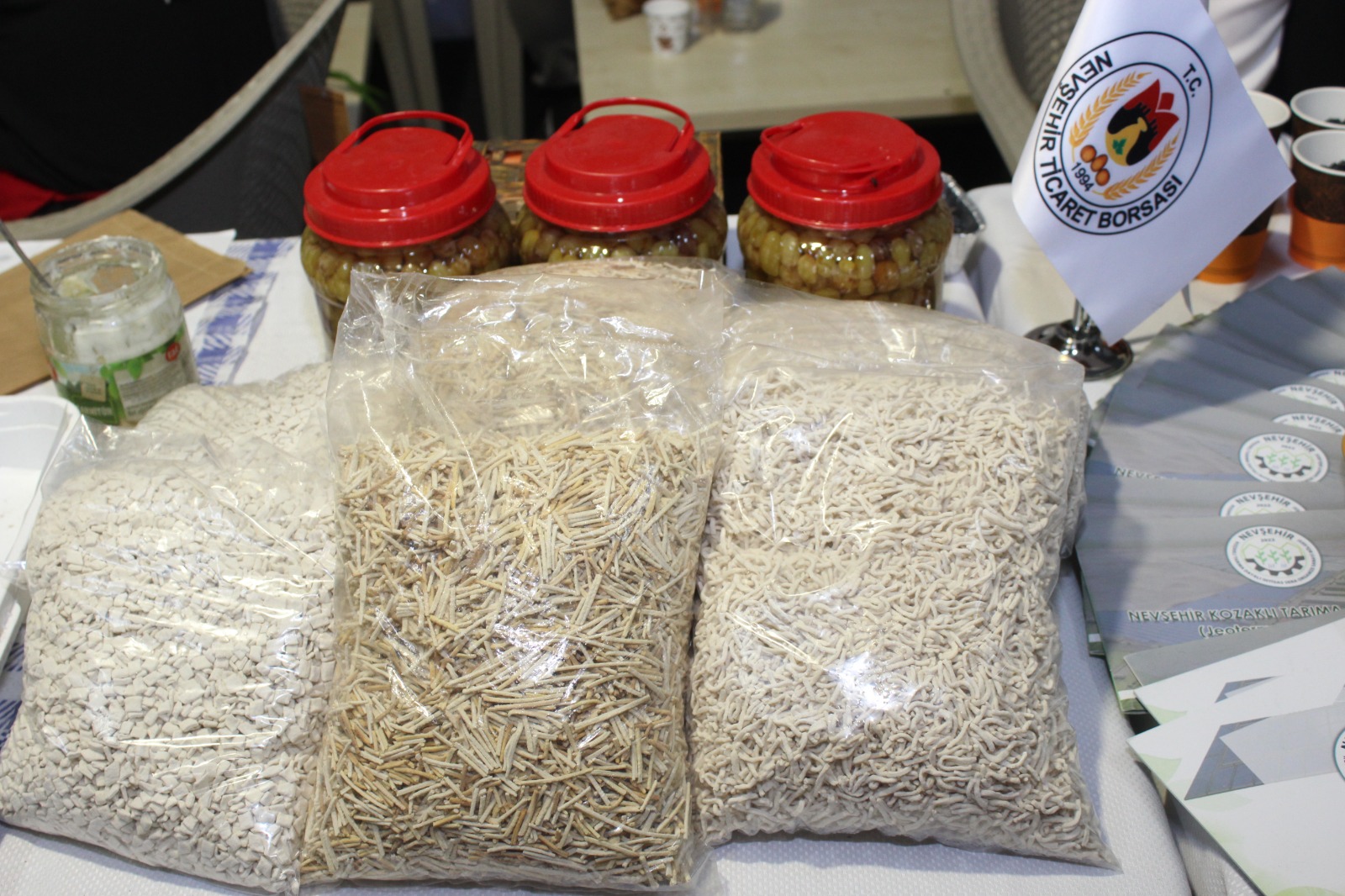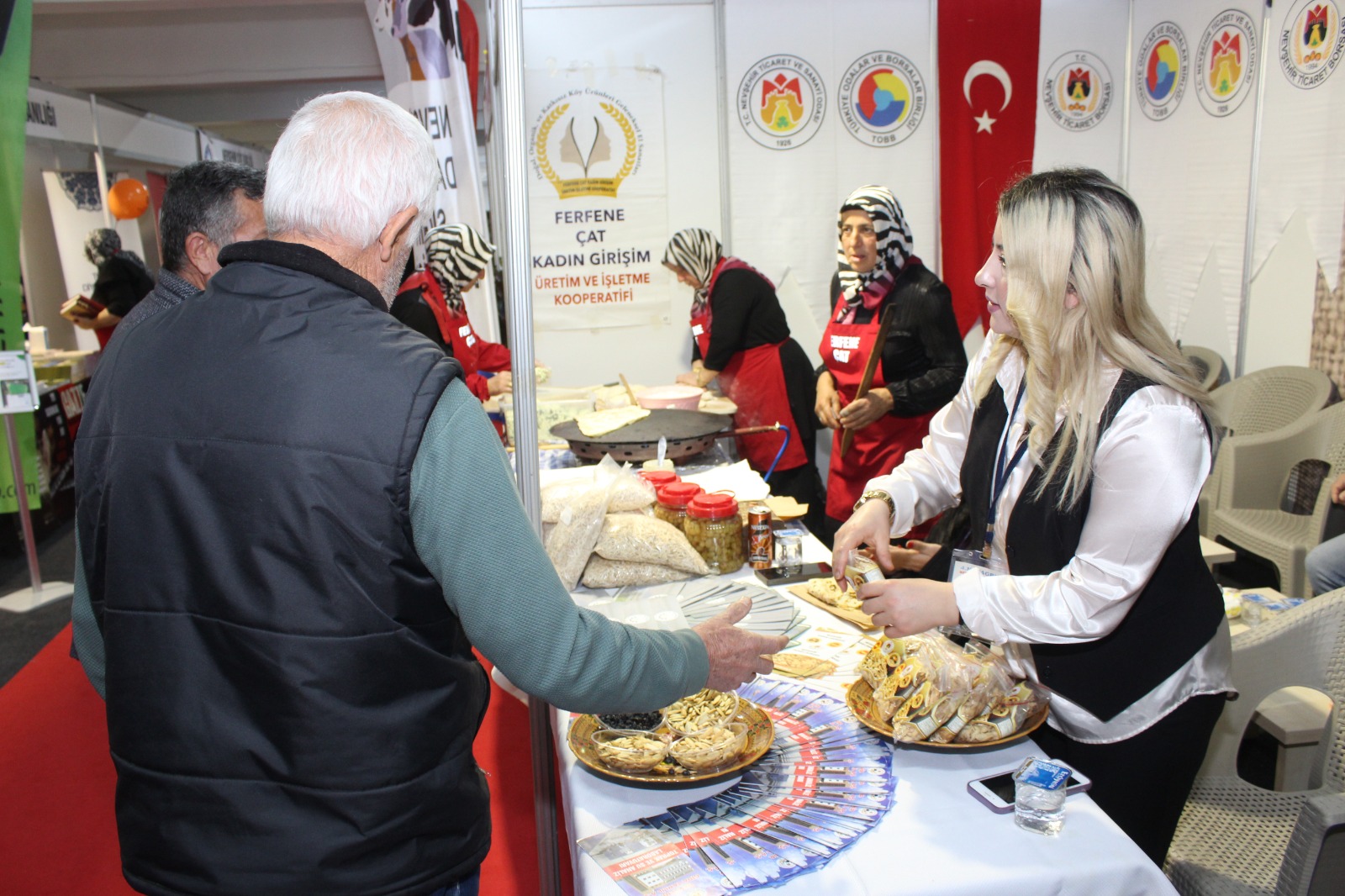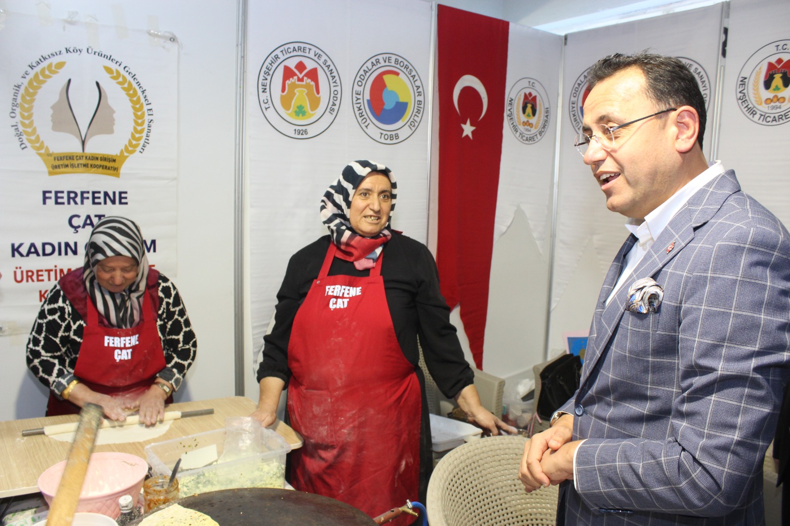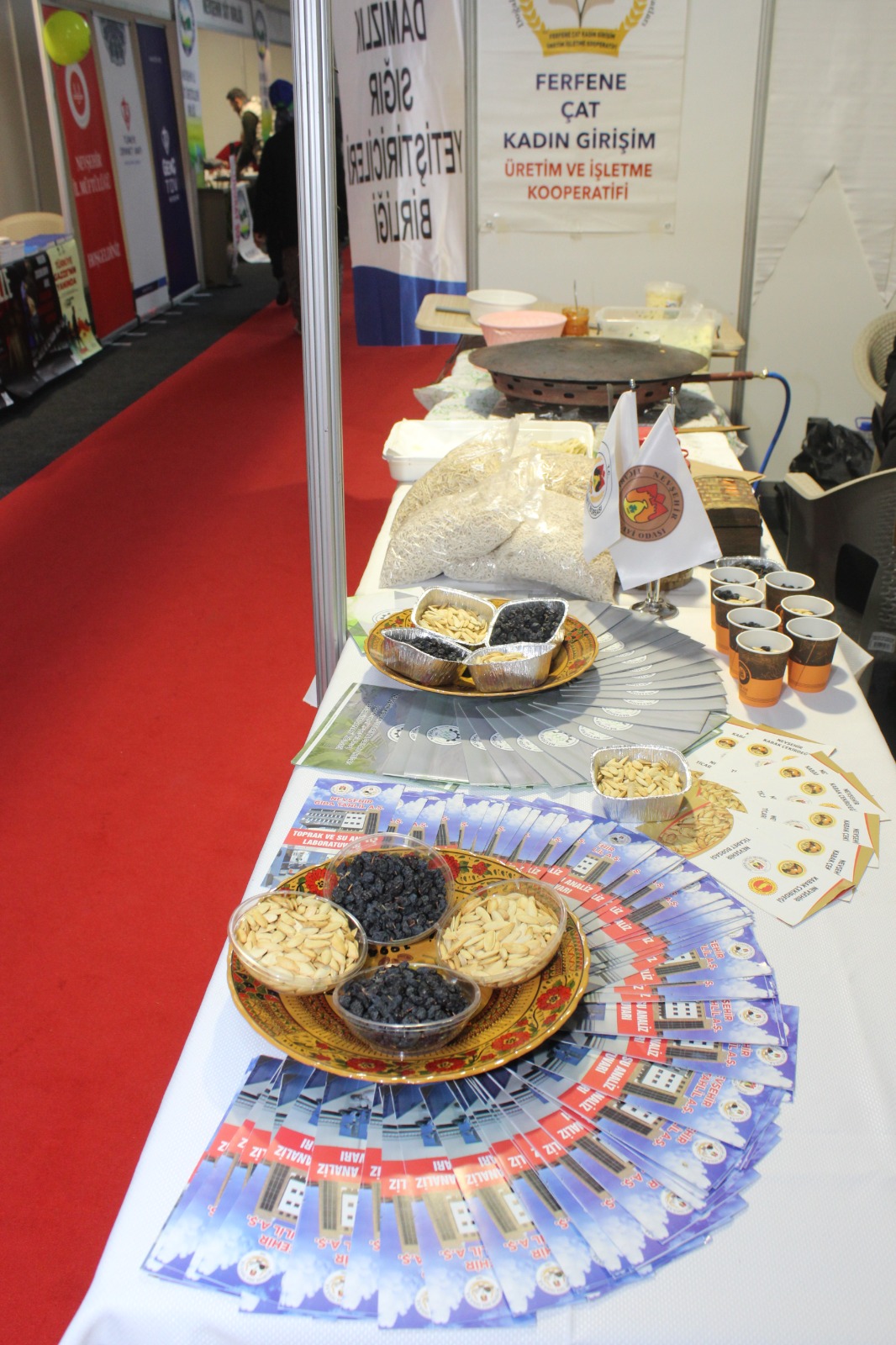 Ziyaretçiler tarafından büyük ilgi gören stantta coğrafi işaret tescilli Nevşehir kabak çekirdeği ile birlikte Çat Ferfene Kadın Kooperatifi tarafından pekmez, kuru üzüm, köftür, erişte, mantı, gözleme, salça, salamura yaprak, üzüm turşusu ve acılı gibi Nevşehir’in yöresel ürünleri sergilendi.