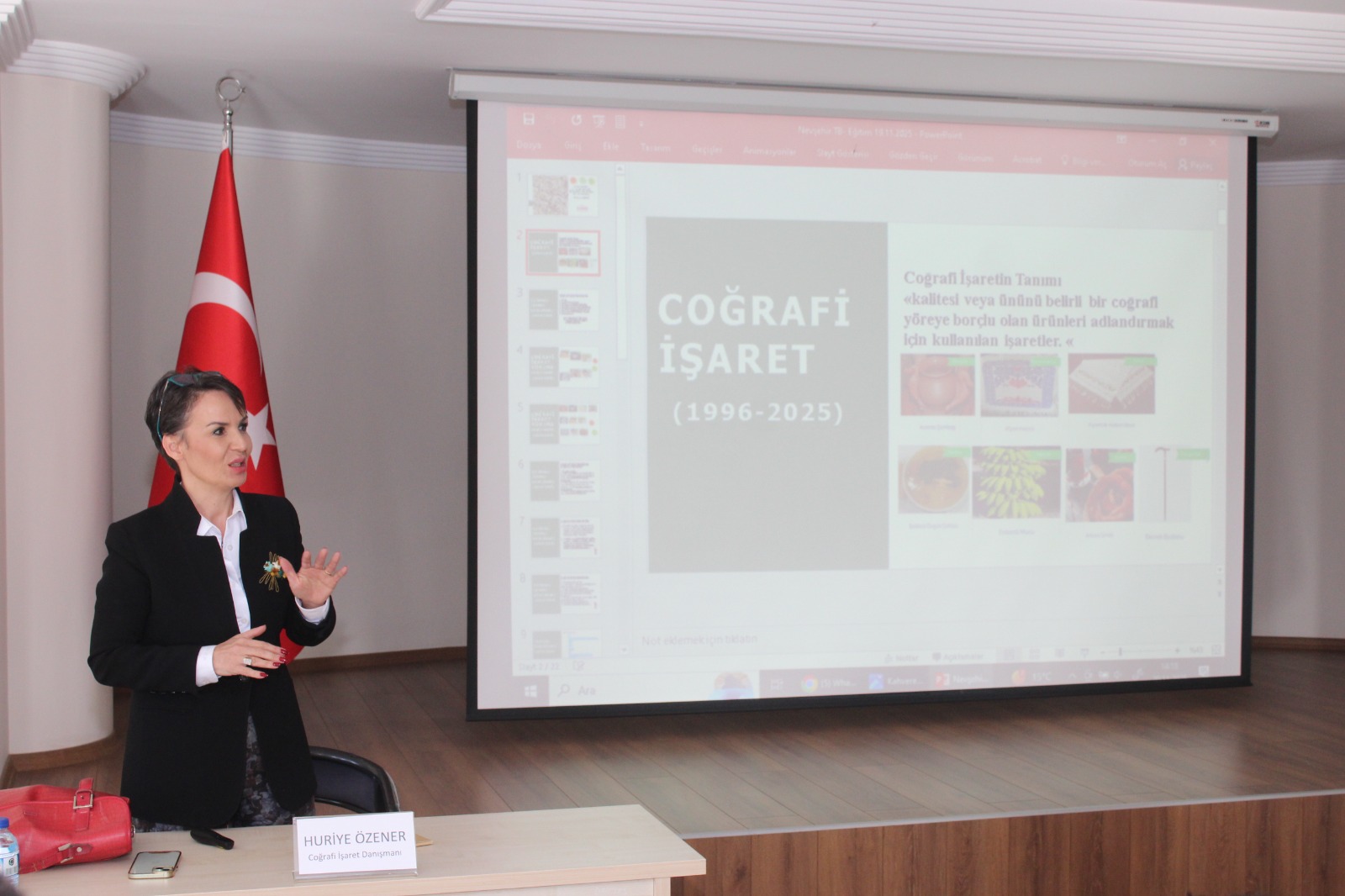 Toplantının konuşmacısı Coğrafi İşaret Danışmanı Huriye Özener, coğrafi işaretin önemine dair kapsamlı bilgiler paylaşarak, Nevşehir kabak çekirdeğinin coğrafi işaretle tescillenmesinin üreticiye ve bölge ekonomisine sağladığı katkılara değindi.