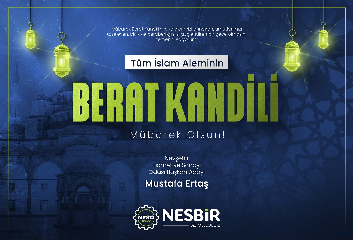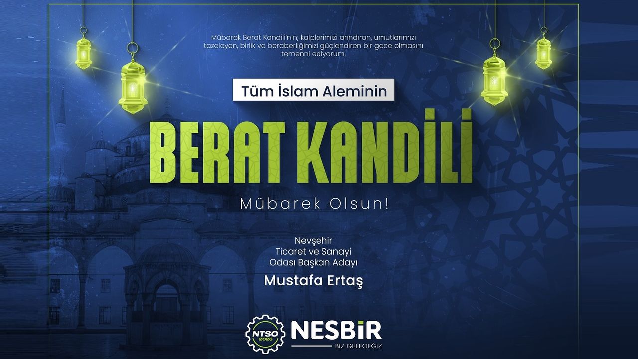 Nevşehir Ticaret ve Sanayi Odası (NTSO) Başkan Adayı Mustafa Ertaş, Berat Kandili dolayısıyla yayımladığı mesajla, tüm İslam âleminin ve Nevşehir halkının mübarek gecesini tebrik etti.