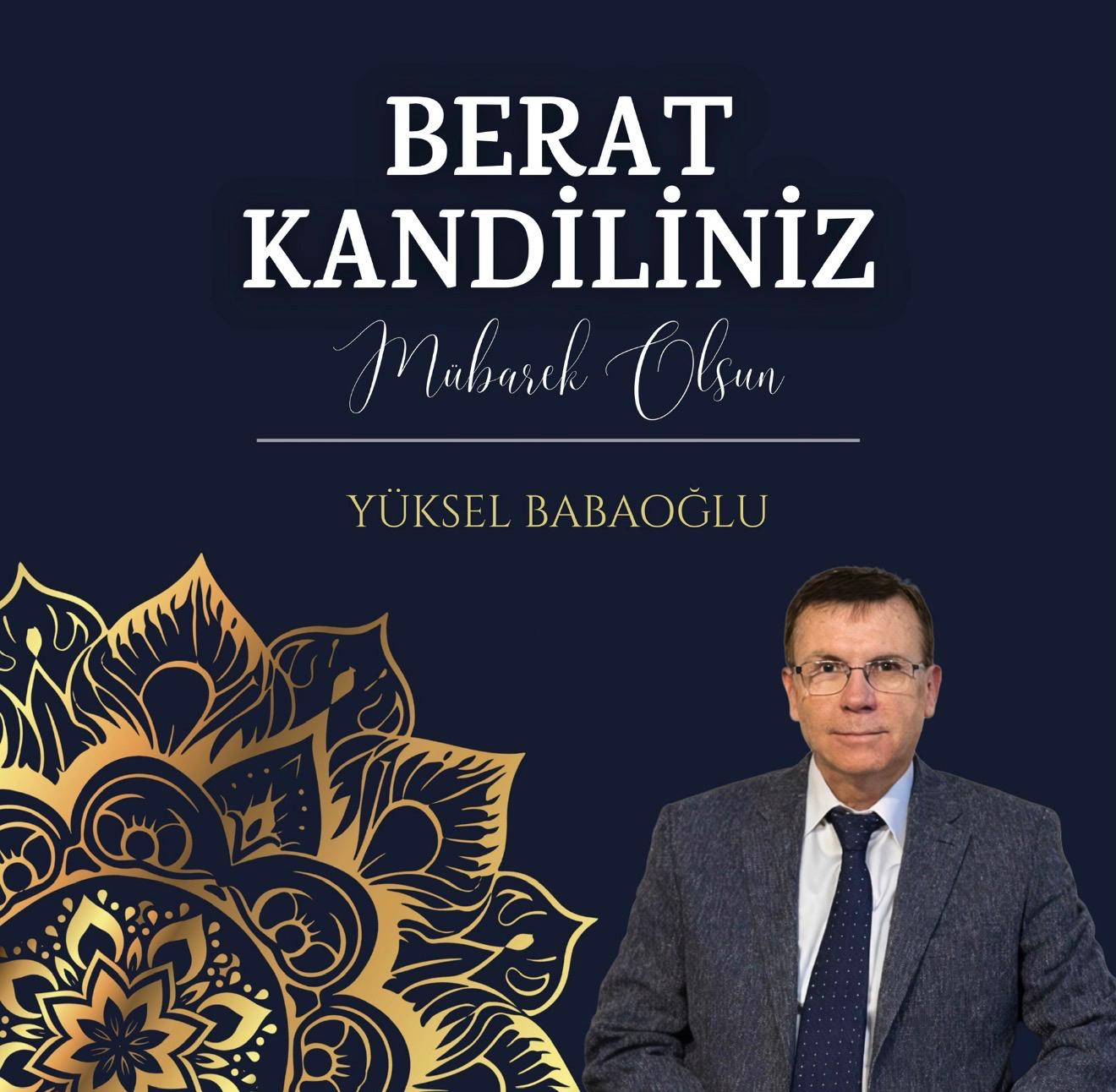 Nevşehir Ticaret ve Sanayi Odası (NTSO) Başkan Adayı ve iş insanı Yüksel Babaoğlu, Berat Kandili dolayısıyla bir mesaj yayımlayarak, tüm İslam âleminin ve Nevşehir halkının kandilini tebrik etti. Babaoğlu, bu mübarek gecenin toplumsal birlik, manevi arınma ve insanlık değerlerini güçlendirmesi açısından önemli anlamlar taşıdığını vurguladı.
